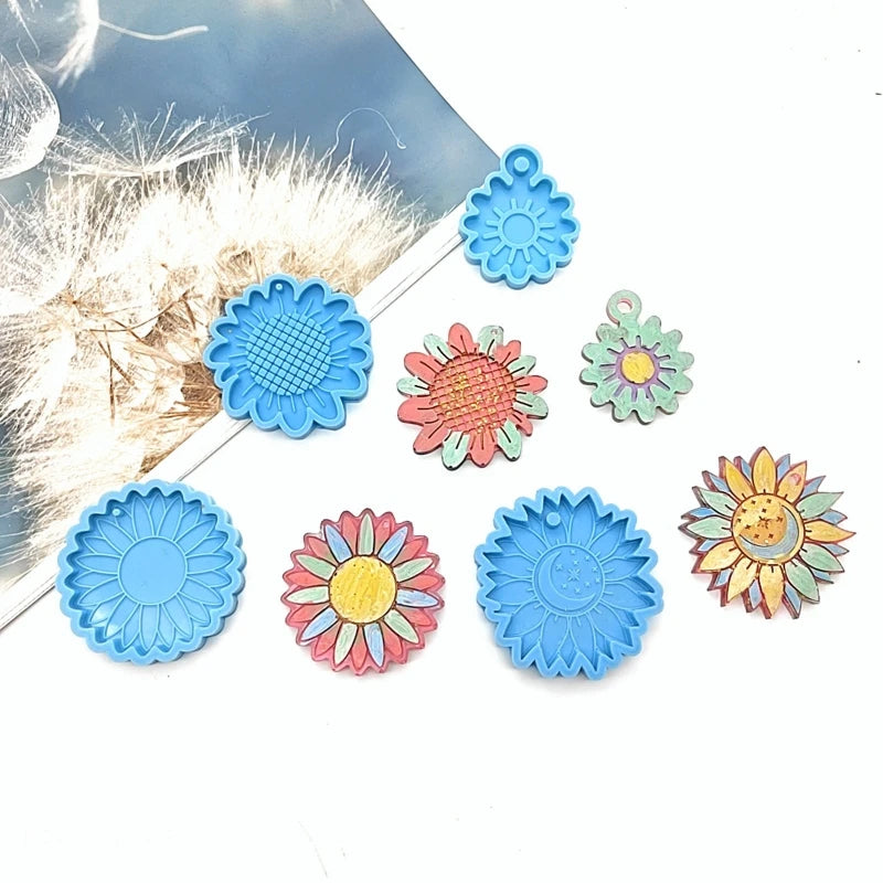 4Pcs Flower Keychain Mold Sunflower Resin Molds DIY Keychain Making