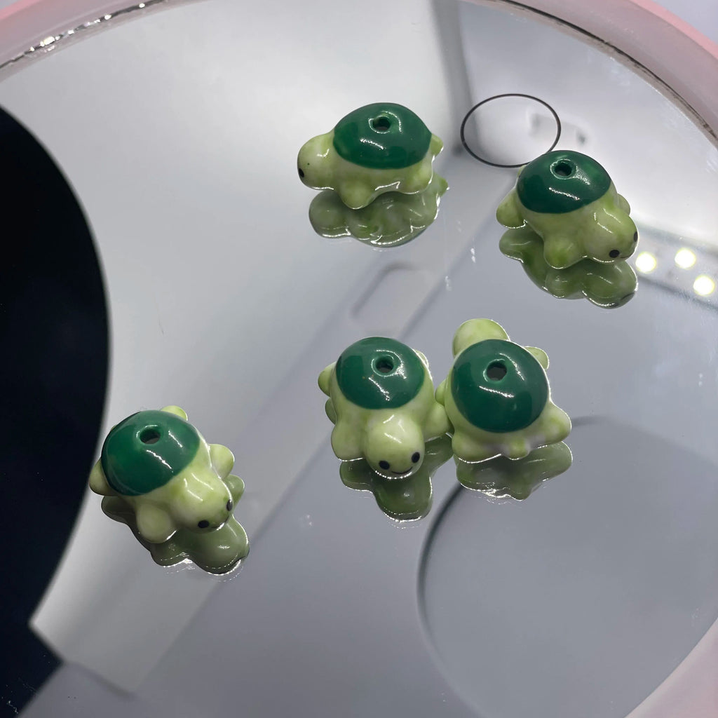 4Pcs Green Back Turtle Ceramic Beads DIY Loose Porcelain Beads