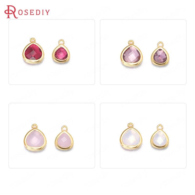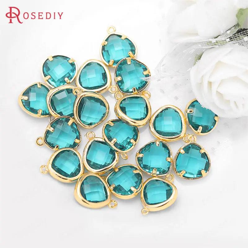 4PCS High Champagne Brass Glass Triangle Charms Pendants Jewelry Accessories