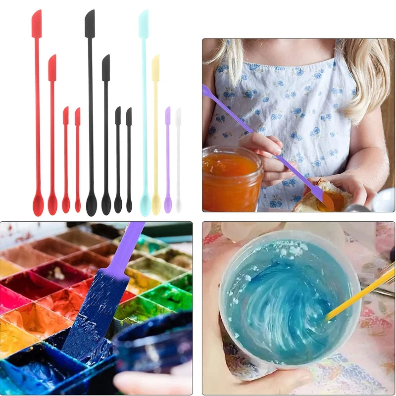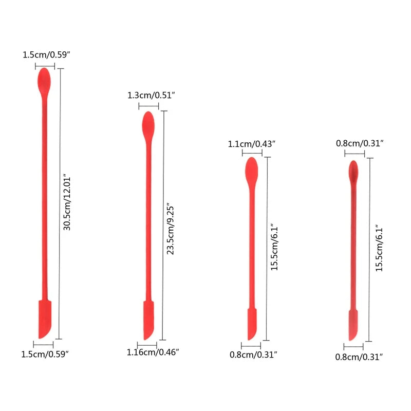 This set includes 4 small silicone spatulas perfect for makeup application. Made of high-quality silicone, these spatulas are versatile and easy to use.
