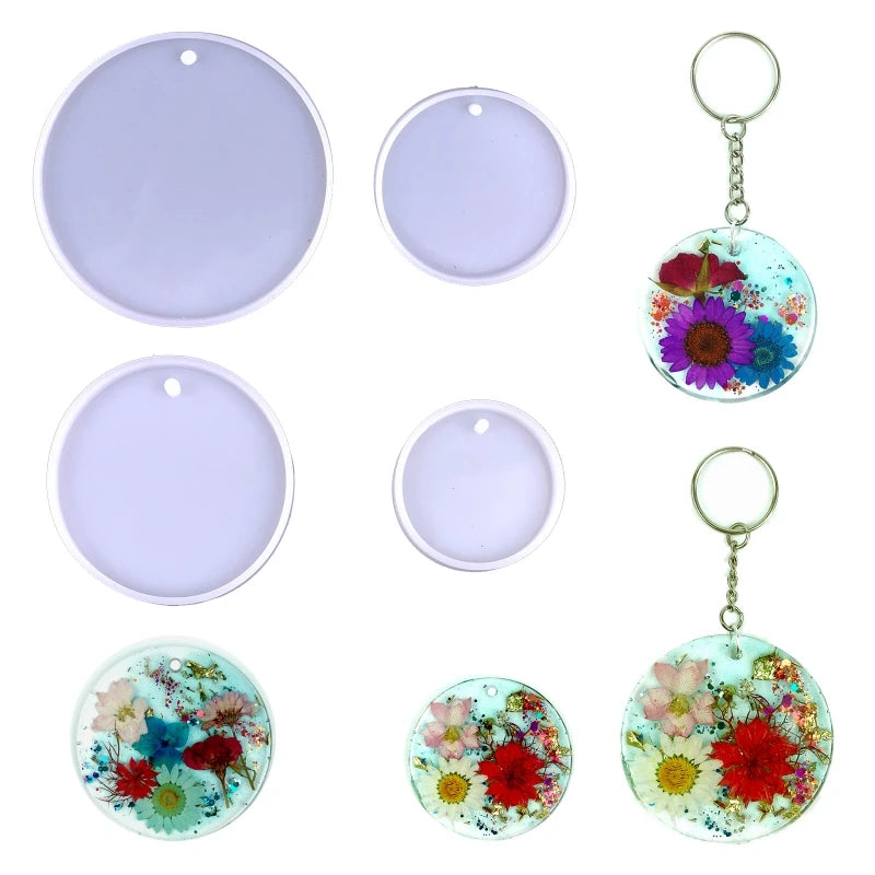 Create unique keychains and pendants with these glossy silicone molds. The set includes four sizes for versatile crafting. Perfect for epoxy resin projects and ornaments.