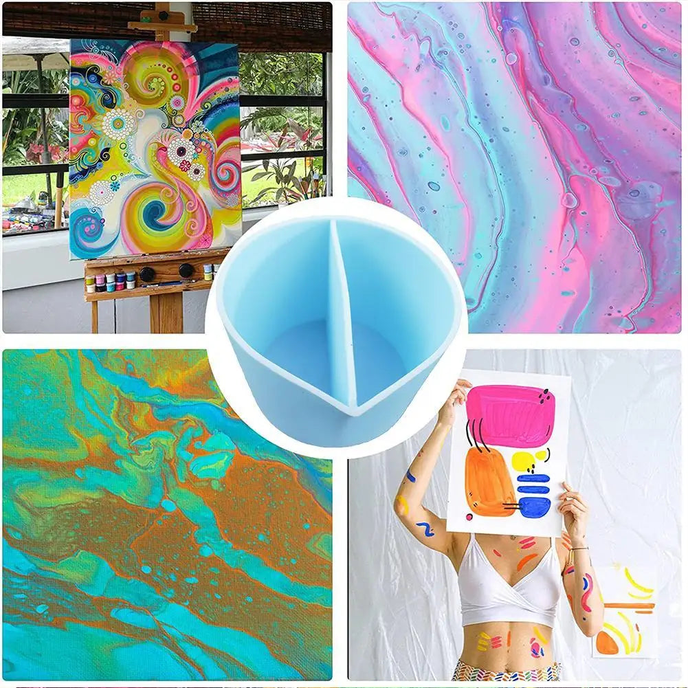 Create amazing acrylic pour artworks with this silicone cup featuring 5 dividers for easy paint separation. Ideal for jewelry making & resin crafts.