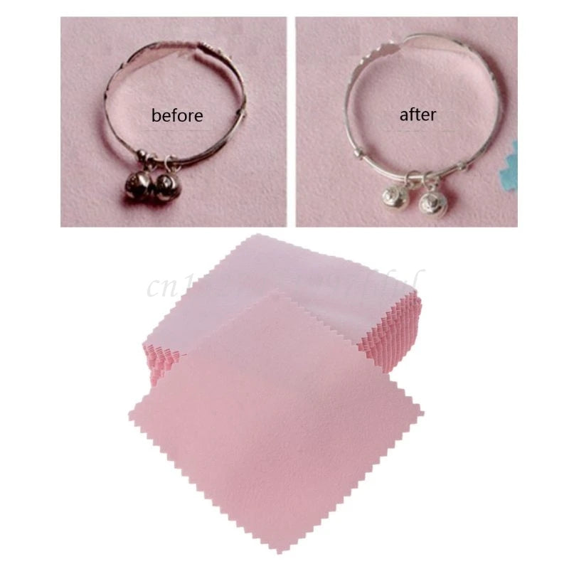 Keep your brass and copper jewelry shining with this set of 50 pink polishing cleaning cloths. Ideal for maintaining the luster of your favorite pieces.