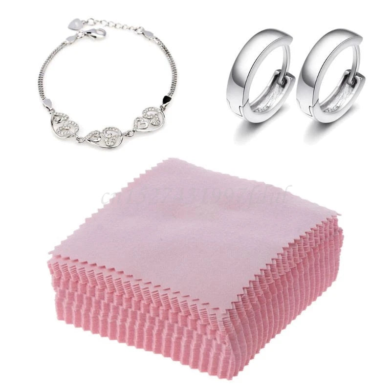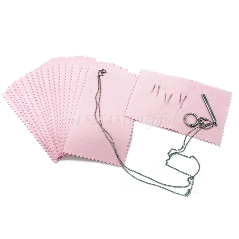 50Pcs Pink Polishing Cloth Jewelry Cleaner Brass & Copper Jewelry Tools