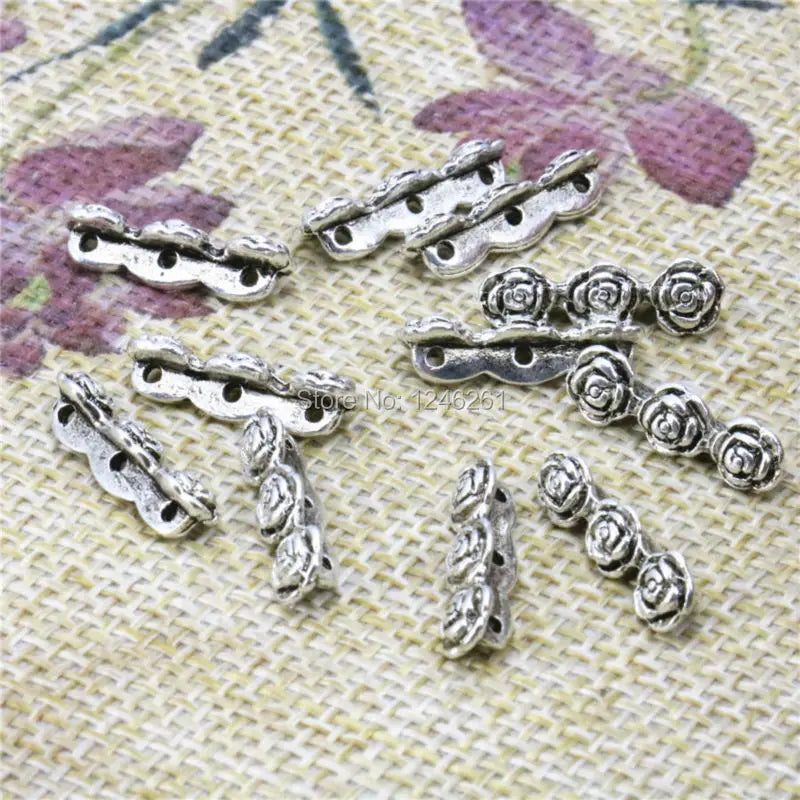 5PCS 3Hole Rose Shaped DIY Loose Finding Accessories Jewelry Making Copper