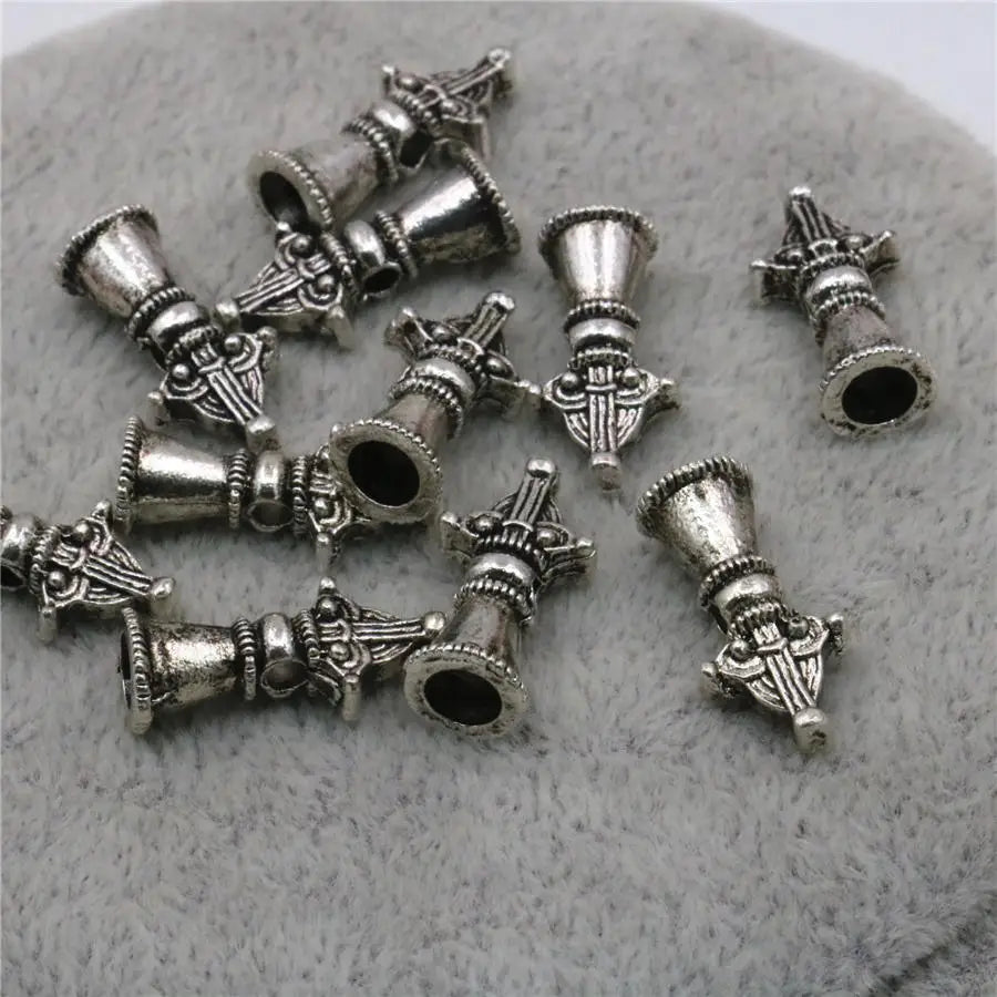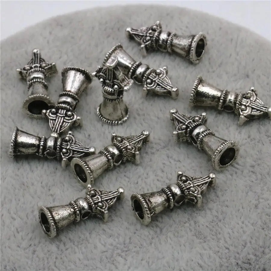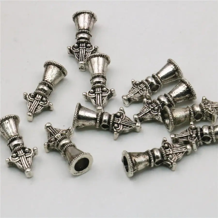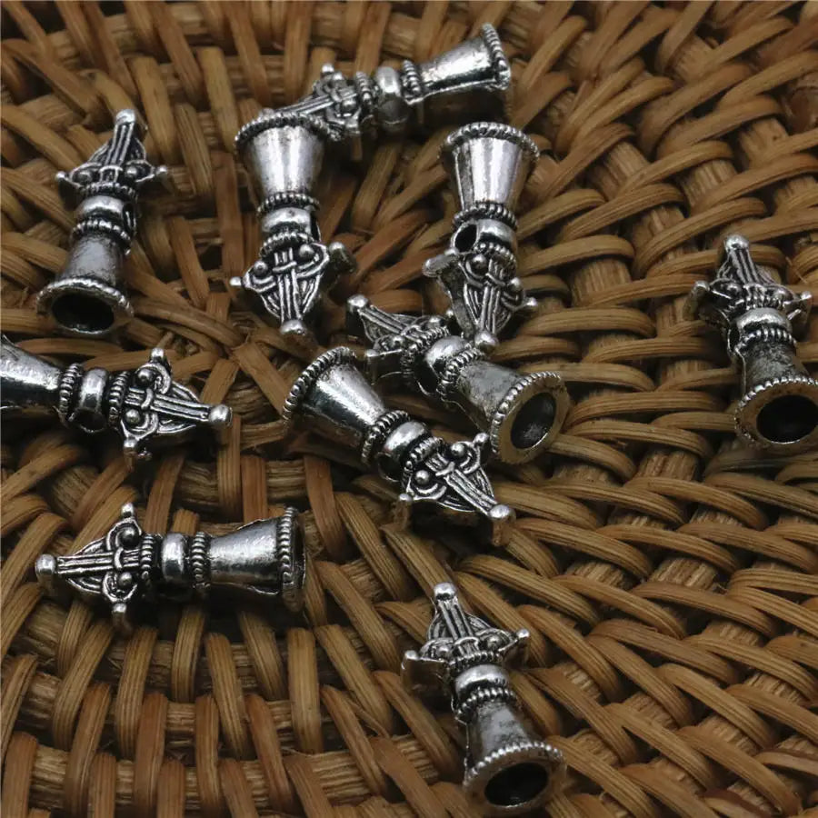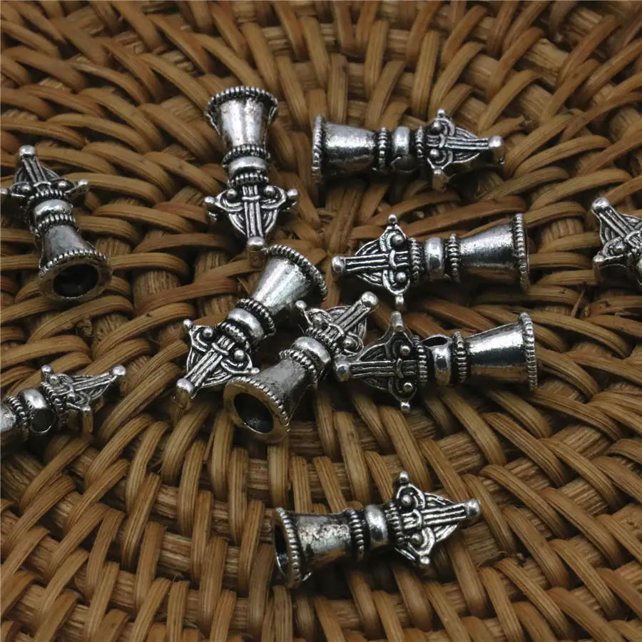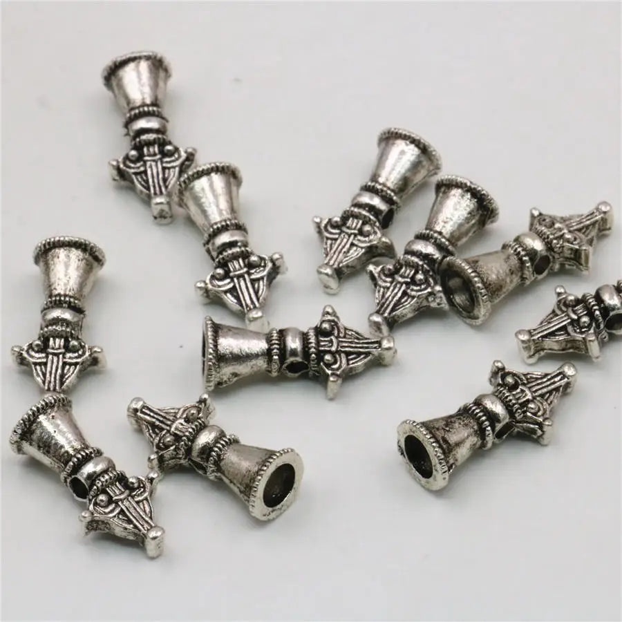 Enhance your jewelry making with these carved copper beads in the shape of bell towers. Perfect for DIY crafts and creating unique jewelry pieces.