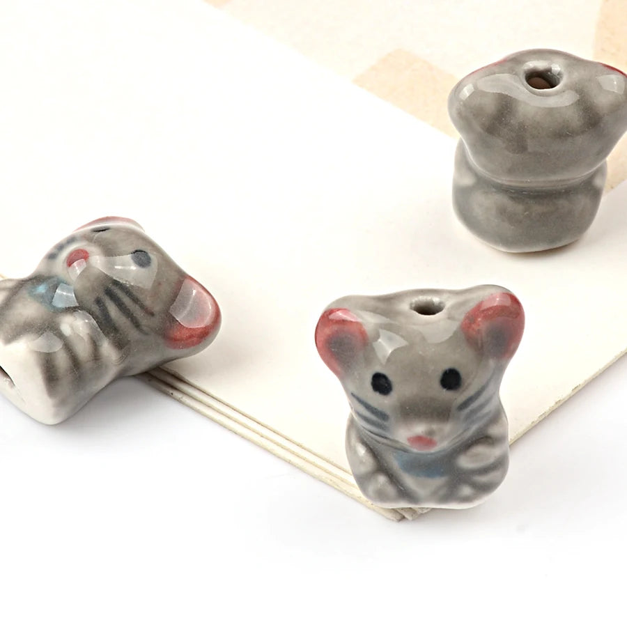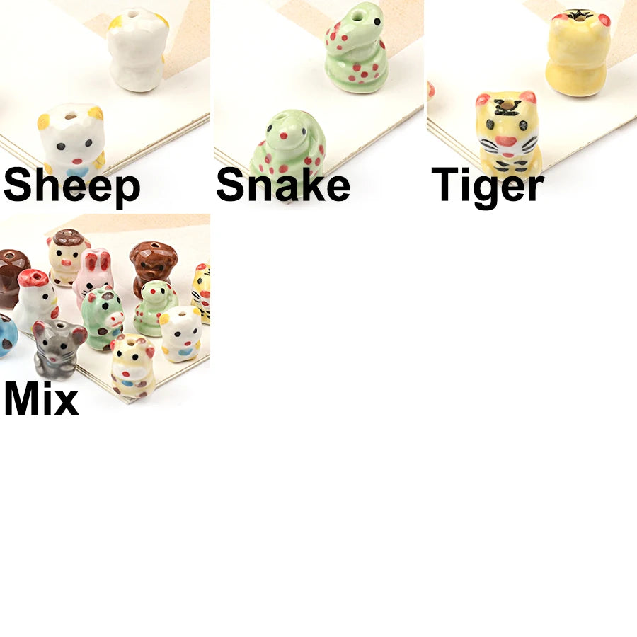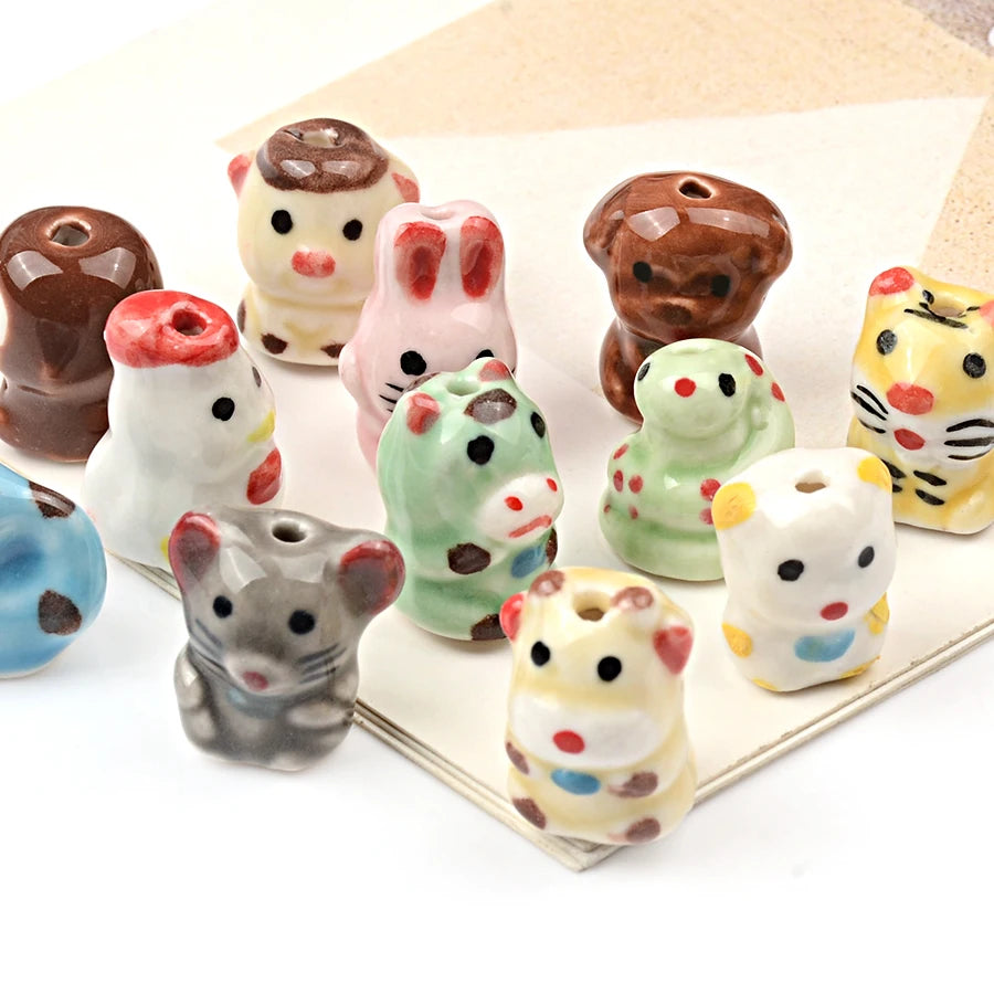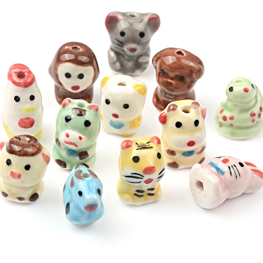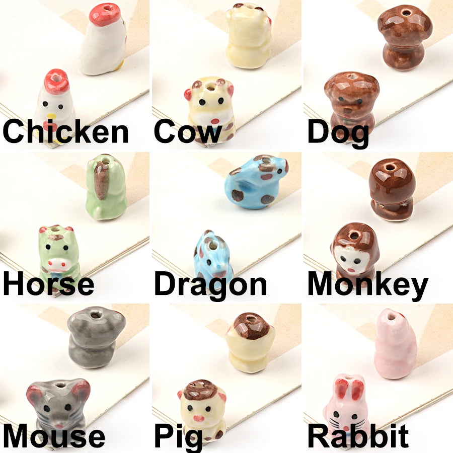 5pcs Hand-painted Animal 12 Chinese Zodiac Ceramic Beads DIY Loose Beads