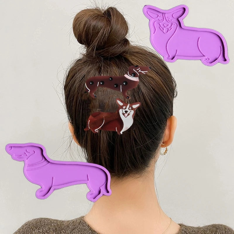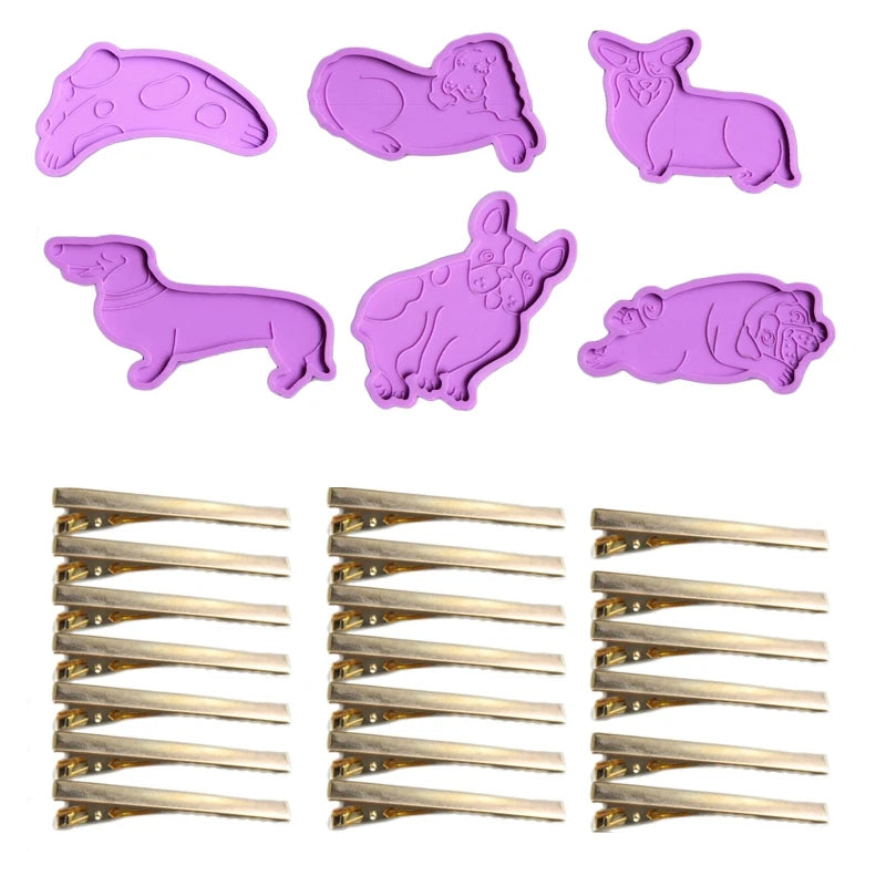 Create beautiful dog hair clips with this silicone mold. Perfect for DIY crafts and jewelry casting. Made of durable material for repeated use.