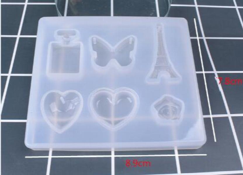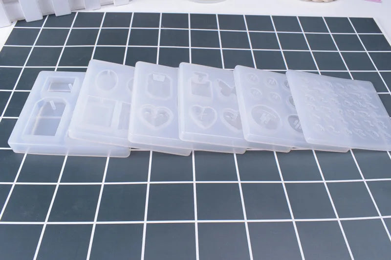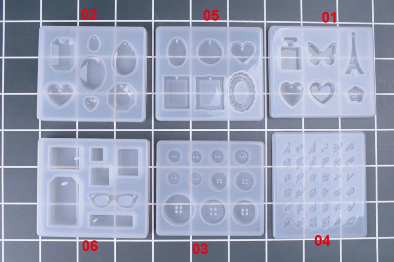 Create stunning resin jewelry with this set of 6 silicone molds featuring a variety of designs including pendants, towers, alphabets, buttons, and more.