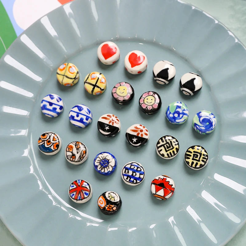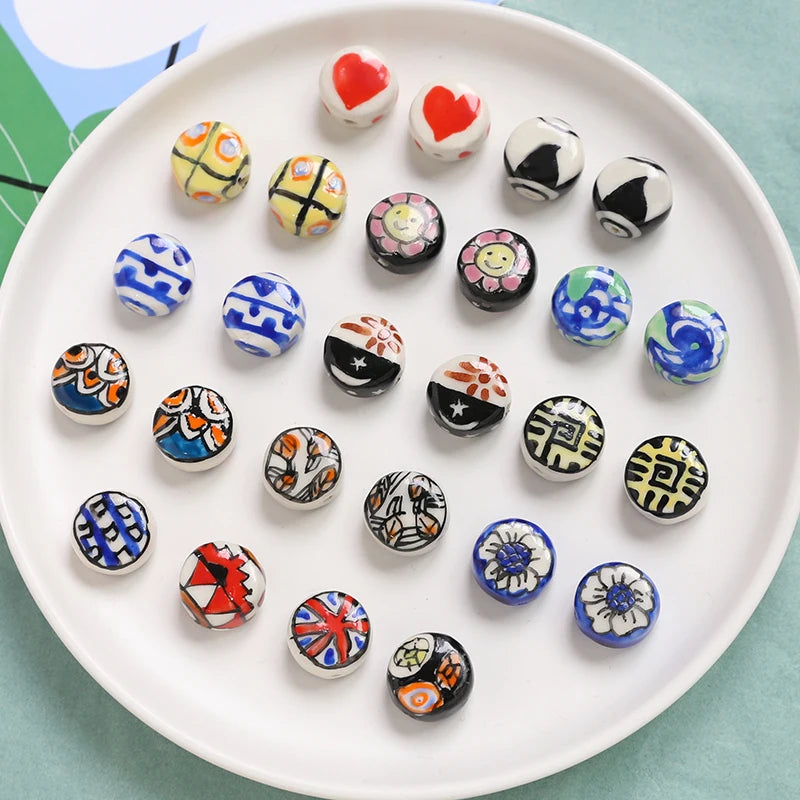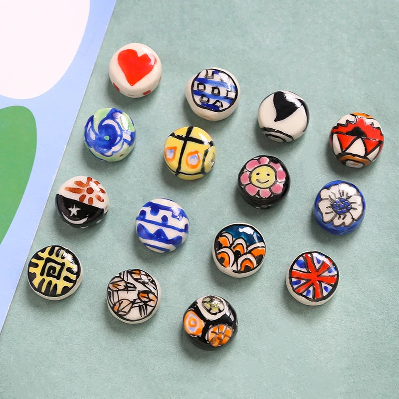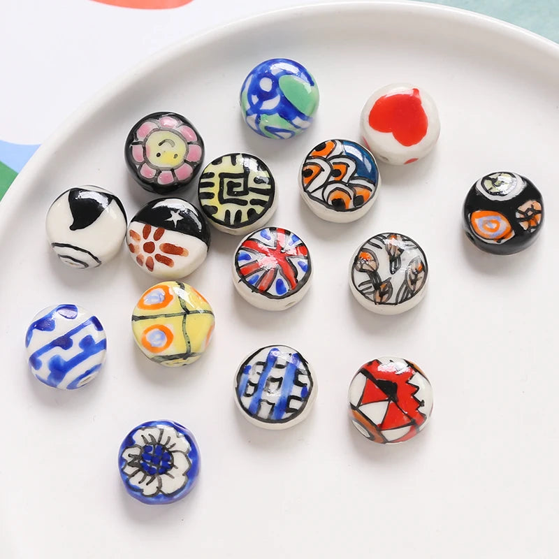 These Japanese painted ceramic beads are perfect for creating your own ornaments, necklaces, earrings, and more. Each bead features a straight hole for easy stringing.