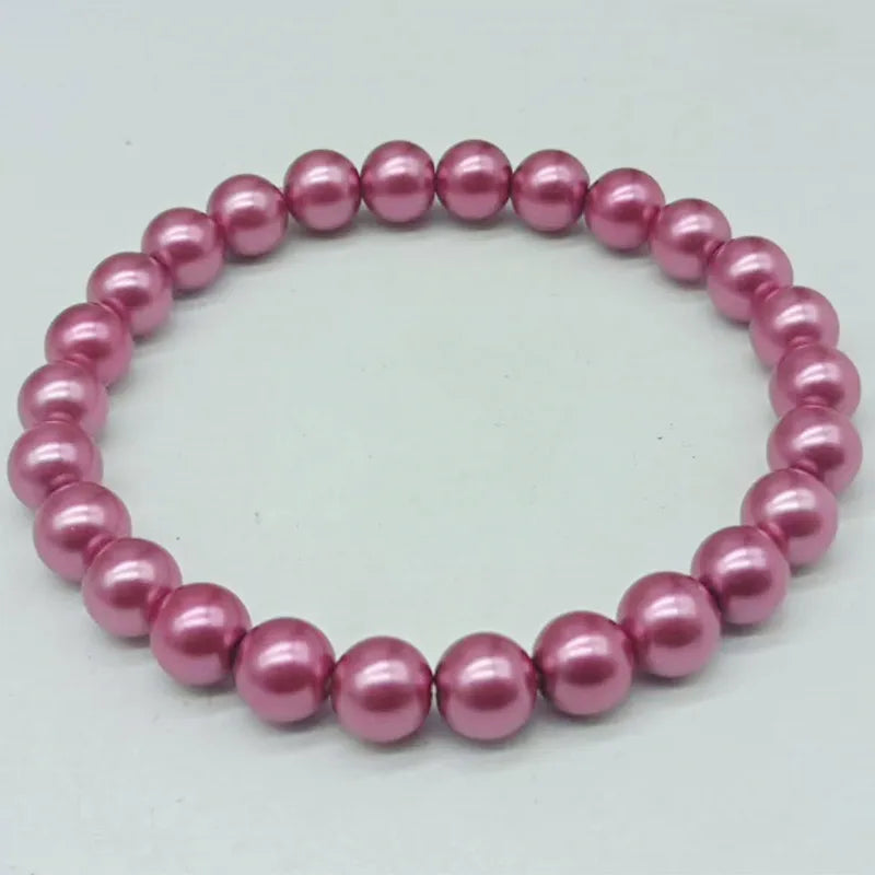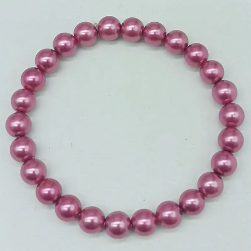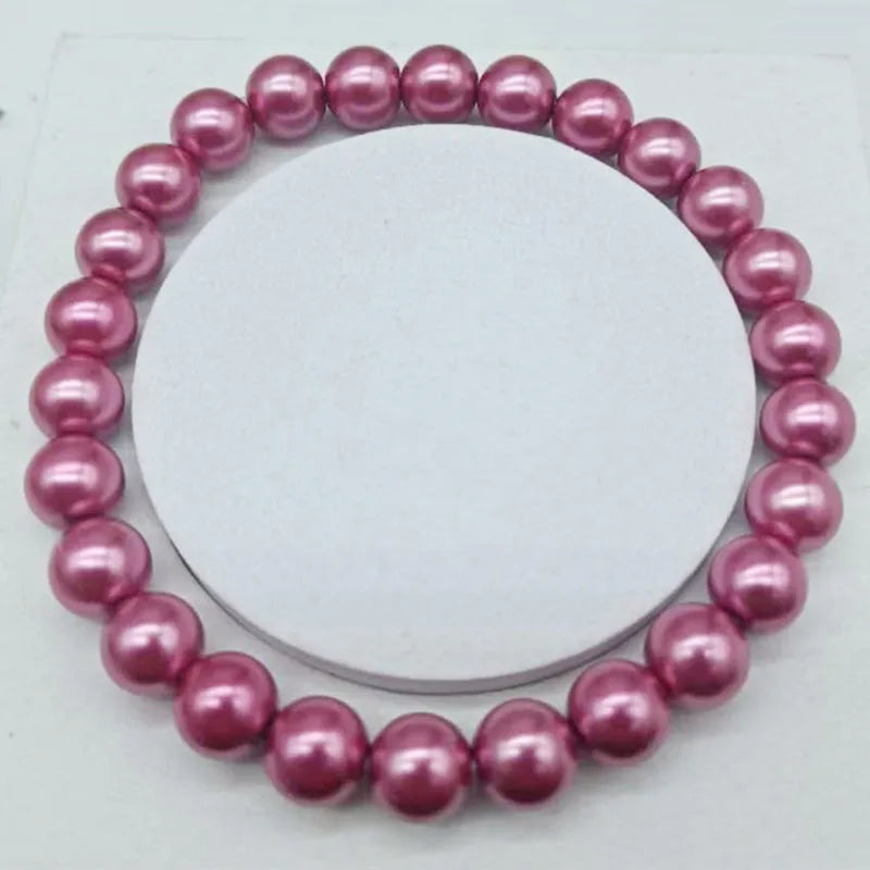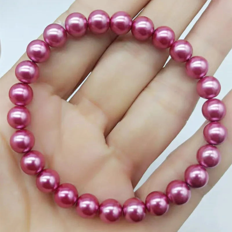This beautiful stretch bracelet features 8mm rose red shell pearl round beads. It is a great addition to any jewelry collection and makes a lovely gift for ladies.