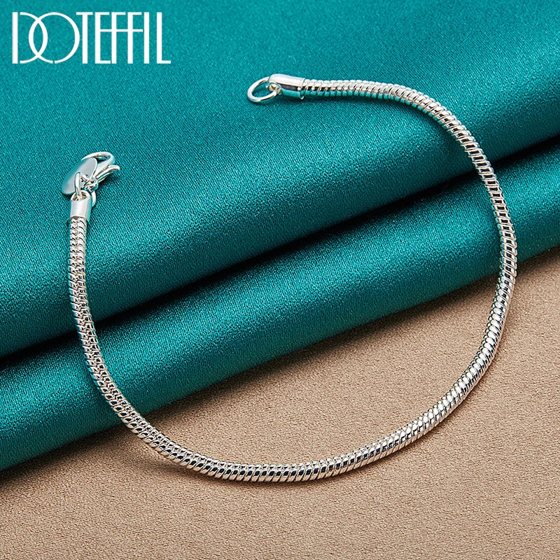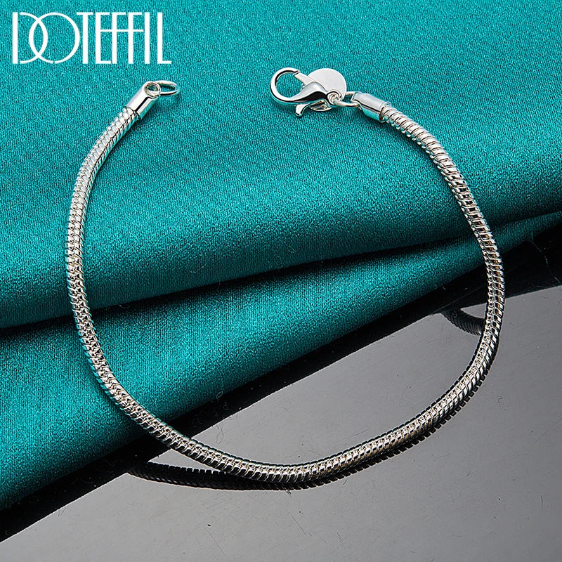 - 925 sterling silver 3mm snake chain bracelet