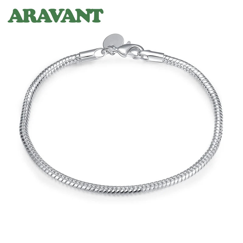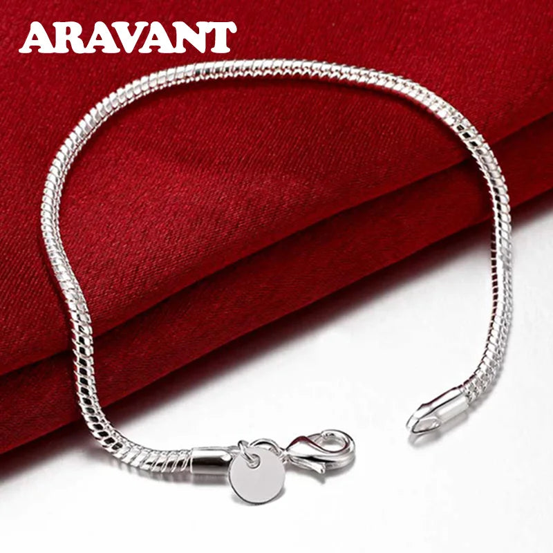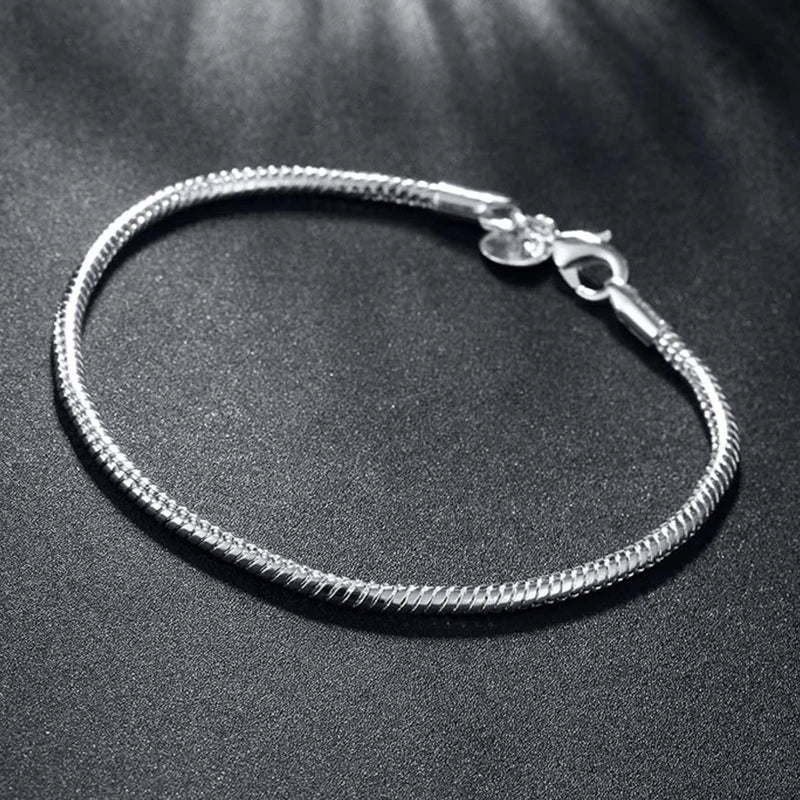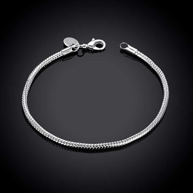 Elegant snake chain bracelet crafted from 925 silver. Available in 3mm or 4mm thickness, perfect for women.