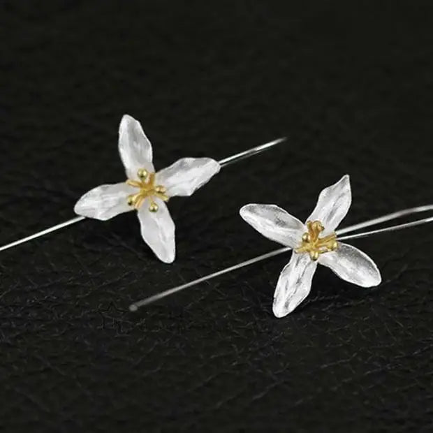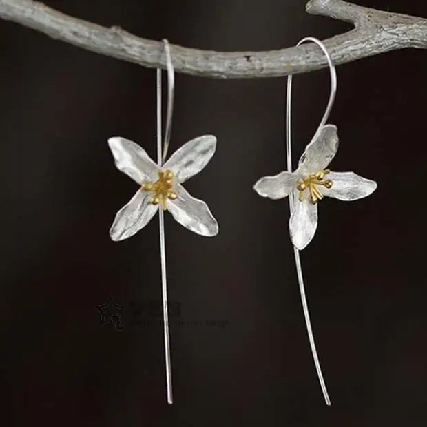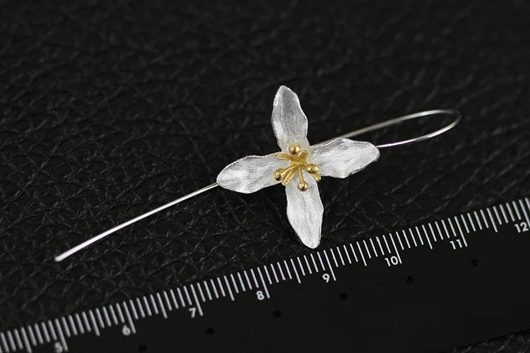 925 Silver 4 Leaf Clover Earrings Long Drop Women Brincos Fine Jewelry