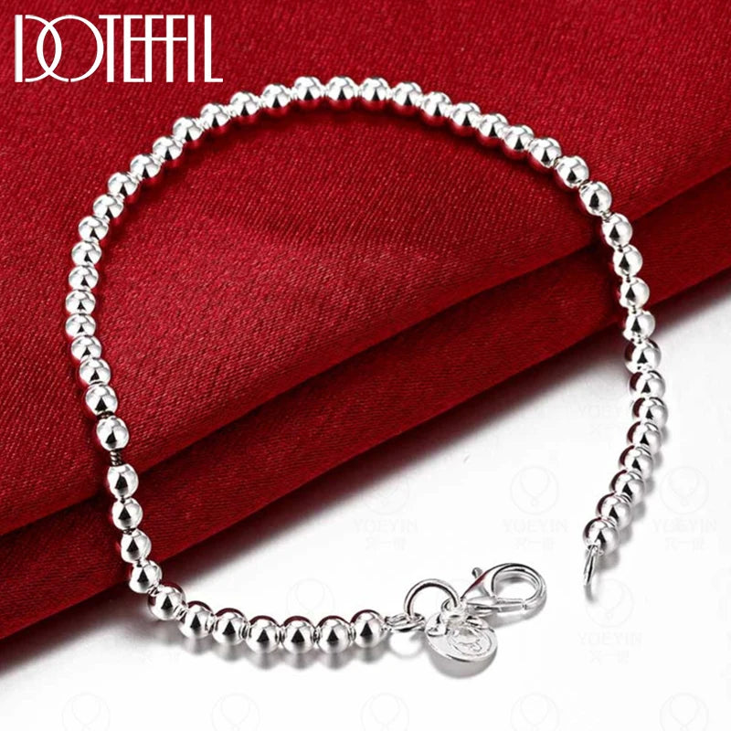 925 Silver 4mm Beads Bracelet Women Wedding Engagement Party Charm Jewelry
