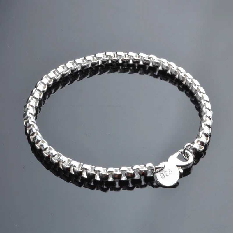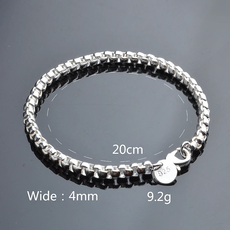This elegant 925 sterling silver bracelet features a 4mm round lattice chain design, perfect for both men and women. Ideal for weddings and parties.