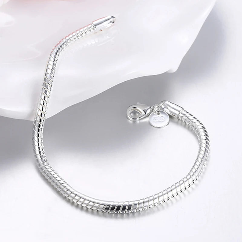 Elegant 925 silver snake chain bracelet perfect for weddings and everyday wear