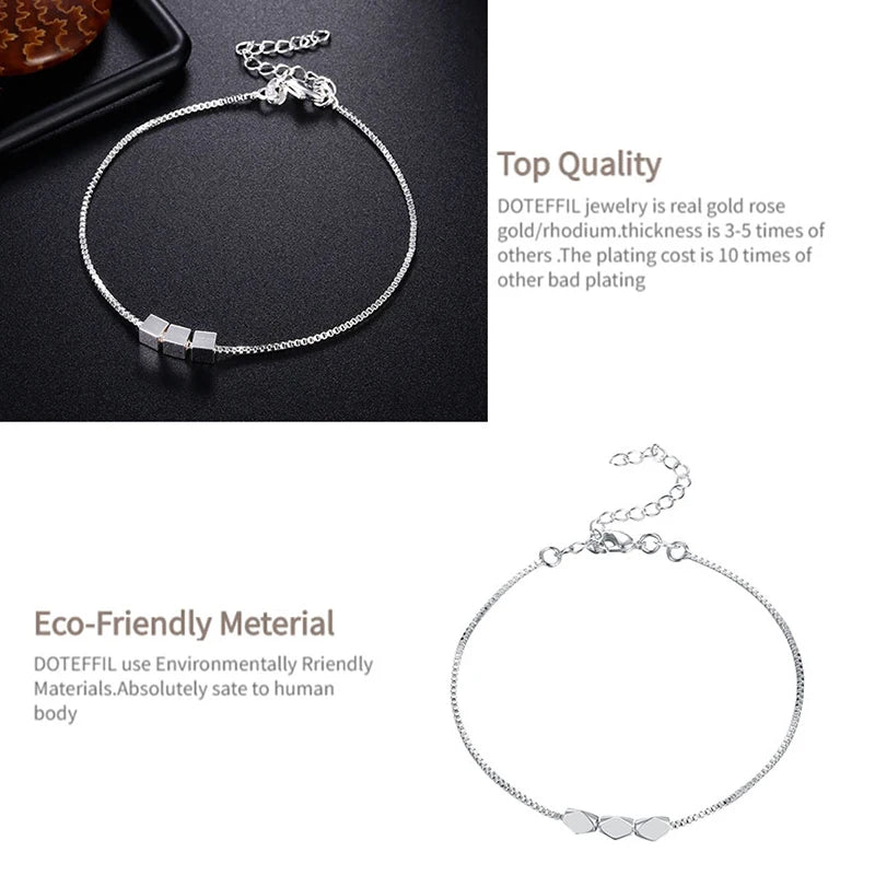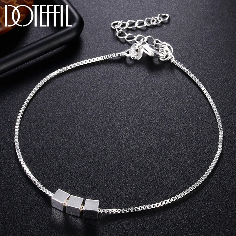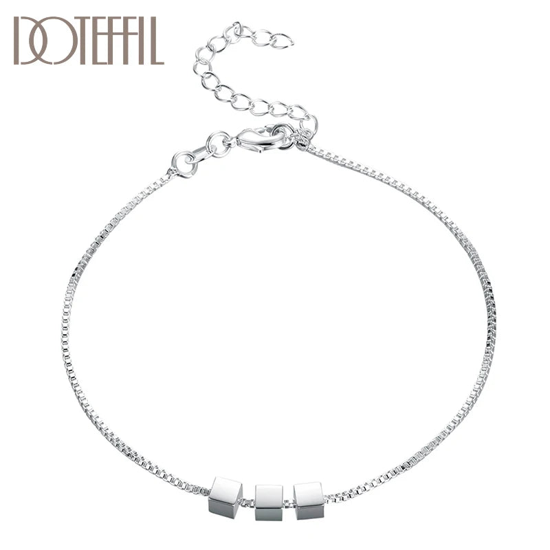 925 Silver 4mm Three Square Chain Bracelet Women Wedding Jewelry
