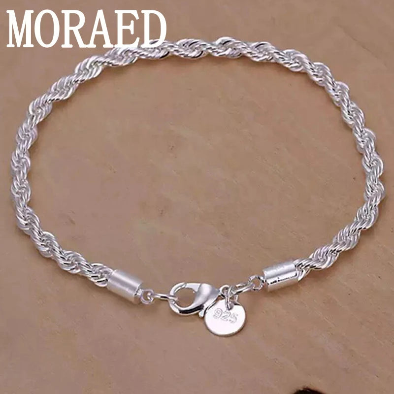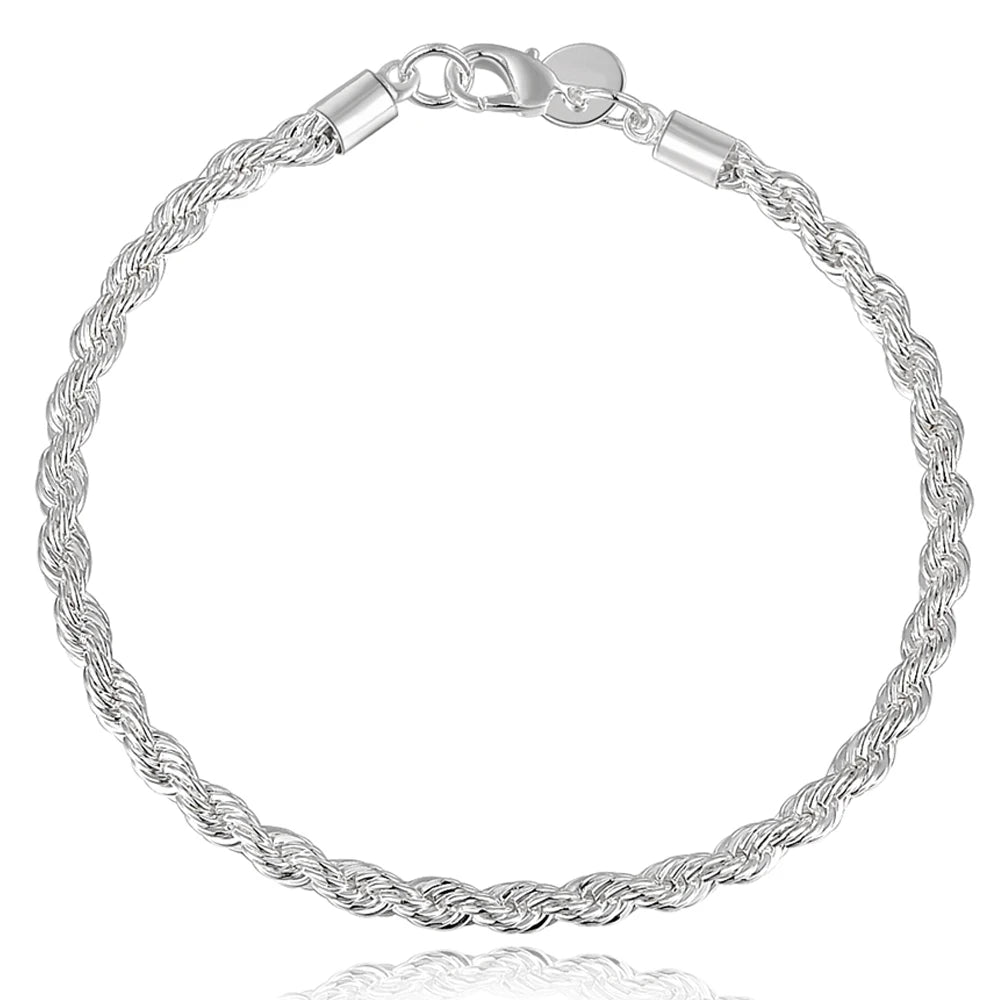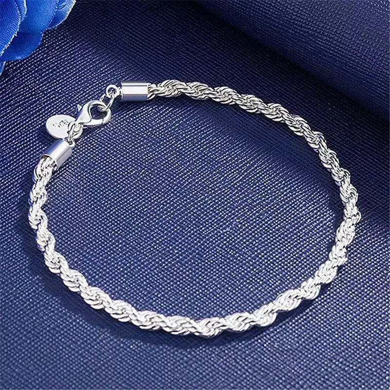 Add a touch of elegance with this 925 sterling silver twisted rope chain bracelet. Perfect for men and women, ideal for weddings and special occasions.