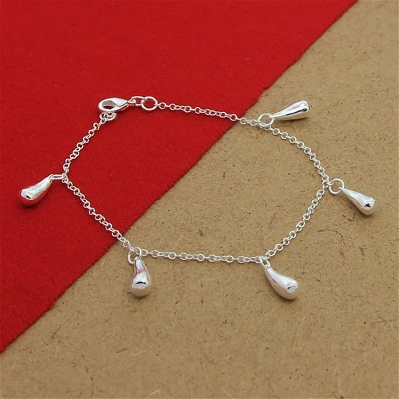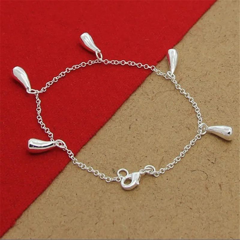 925 Silver 5 Drop Pendant Bracelet Women Charm Jewelry
