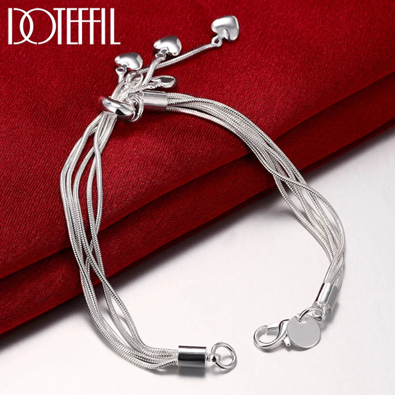 925 Silver 5 Heart Snake Chain Bracelet Women Charm Wedding Jewelry