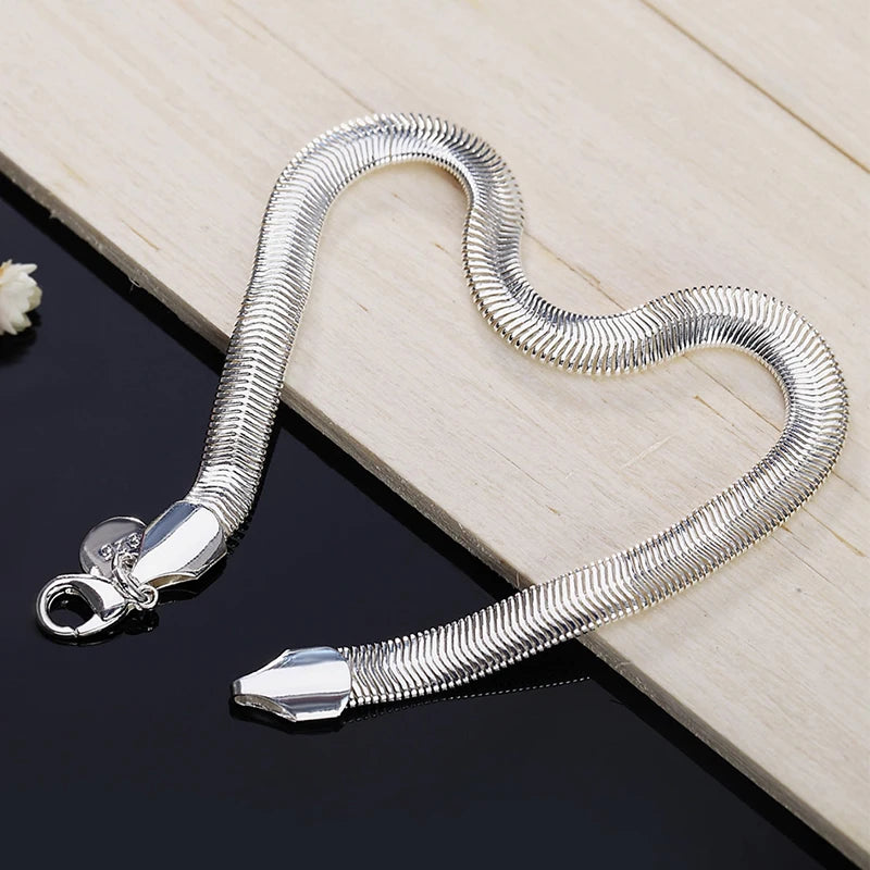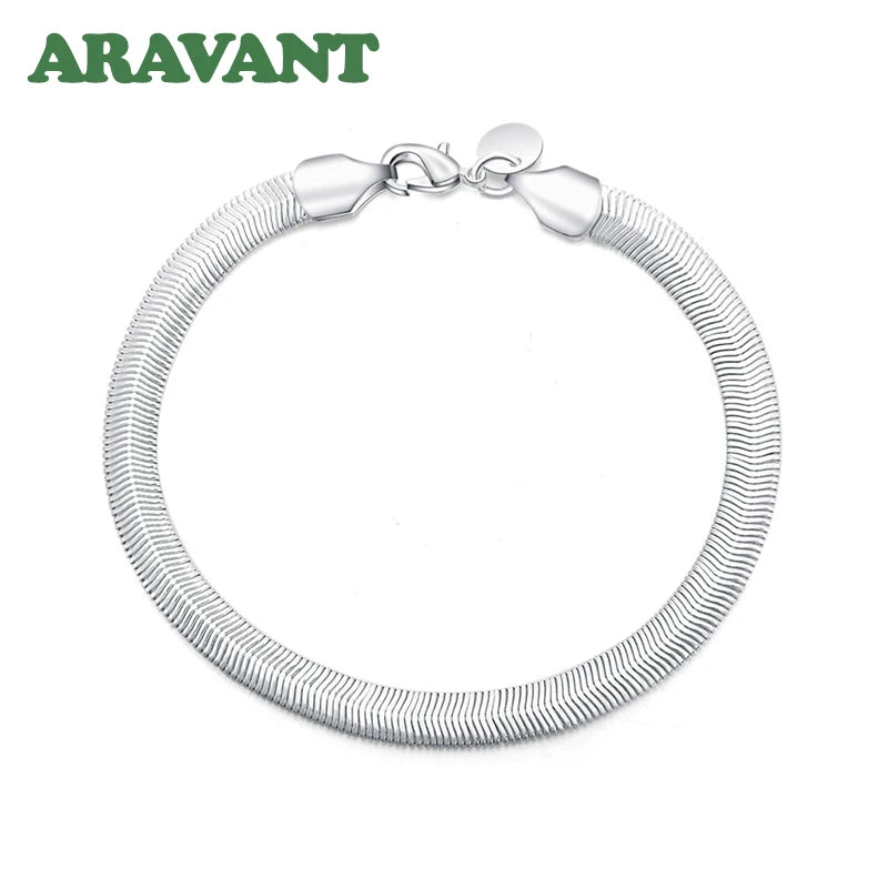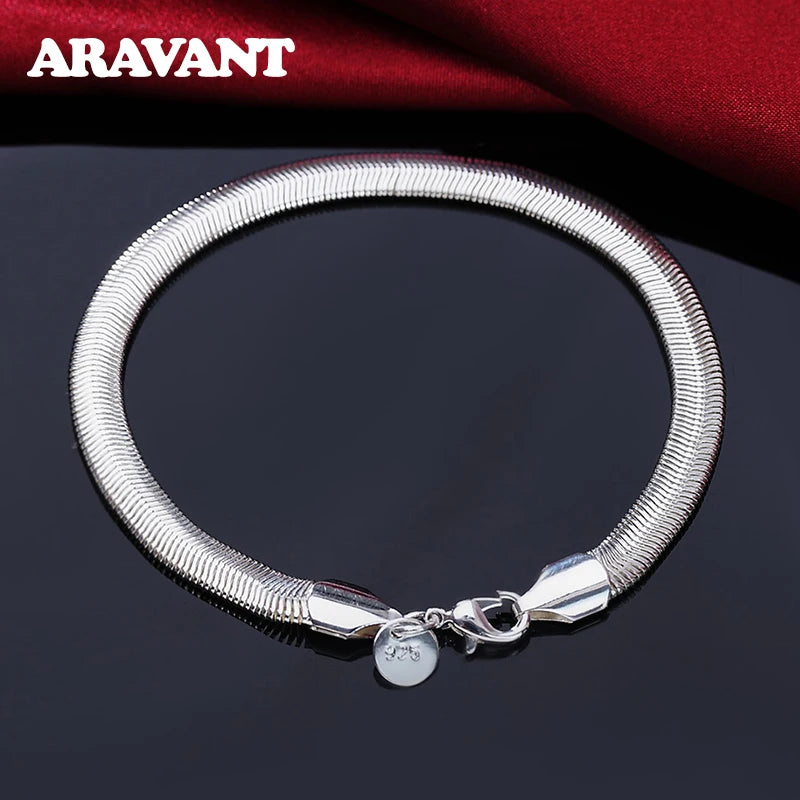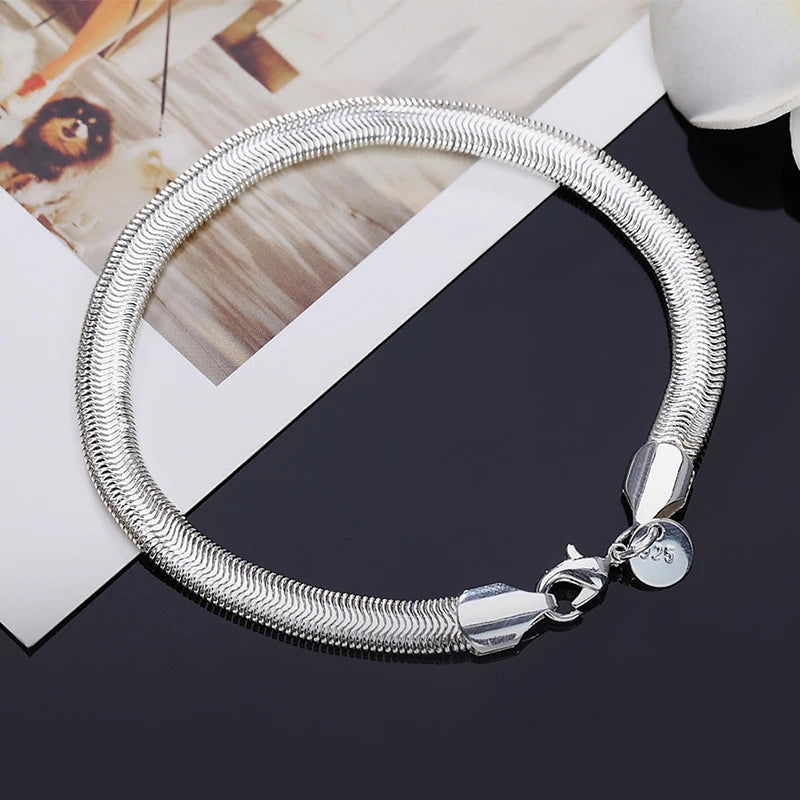 This stunning 925 silver snake chain bracelet bangle is a perfect gift for women. It features a sleek 6mm flat design that adds a touch of elegance to any outfit.