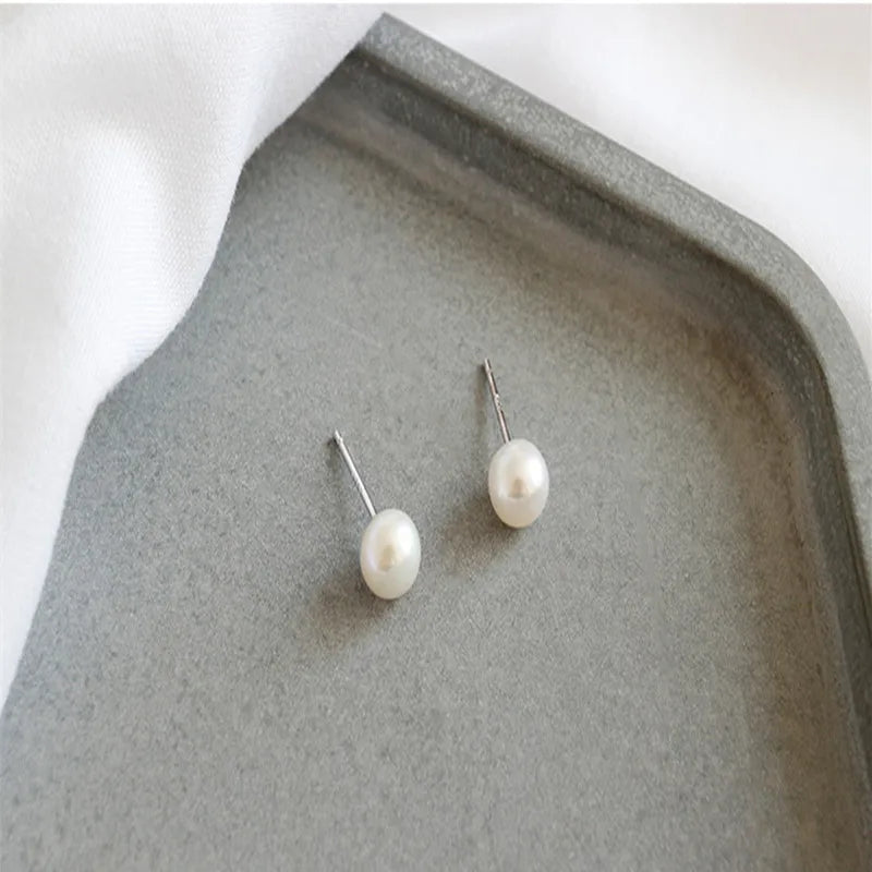 - 925 sterling silver stud earrings with 6mm natural freshwater pearls