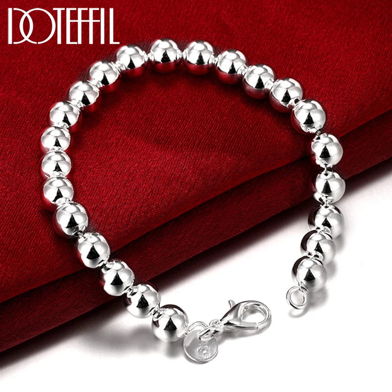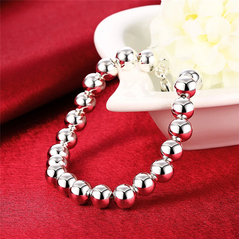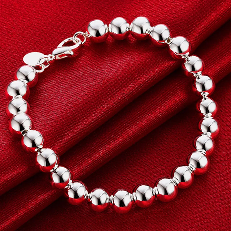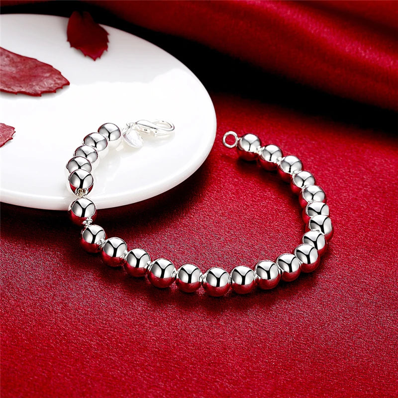 Elegant 925 sterling silver bracelet with smooth 8mm hollow beads, perfect for wedding, engagement and party. A stunning accessory for women.