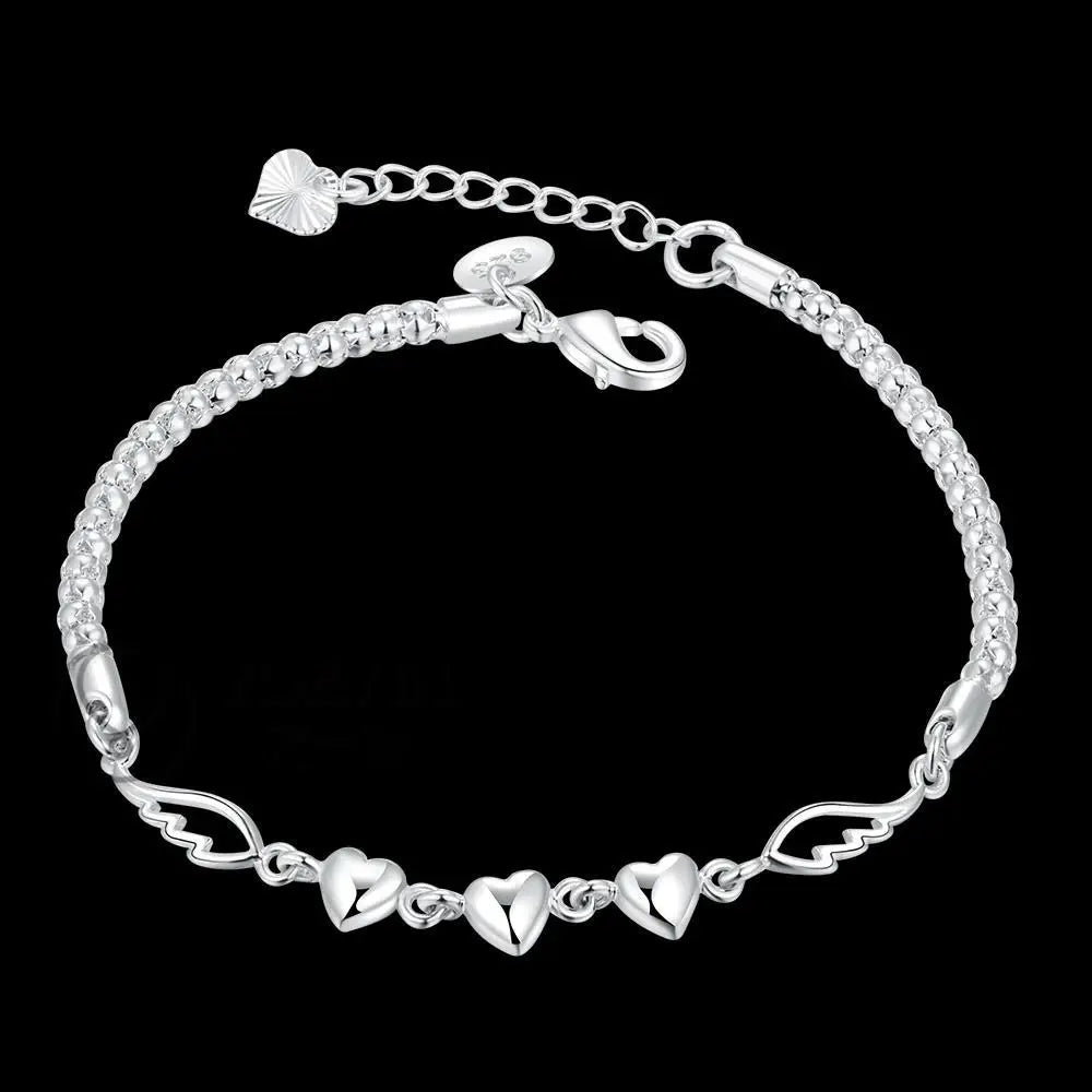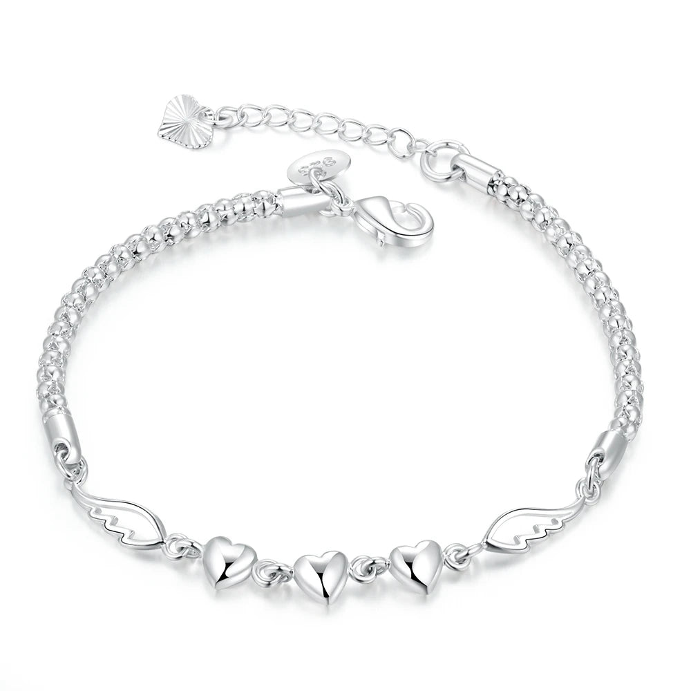 925 Silver Angel Wings Heart Charm Bracelets For Women