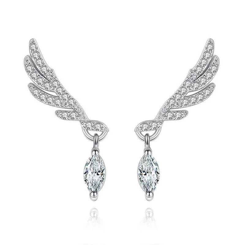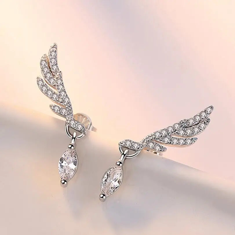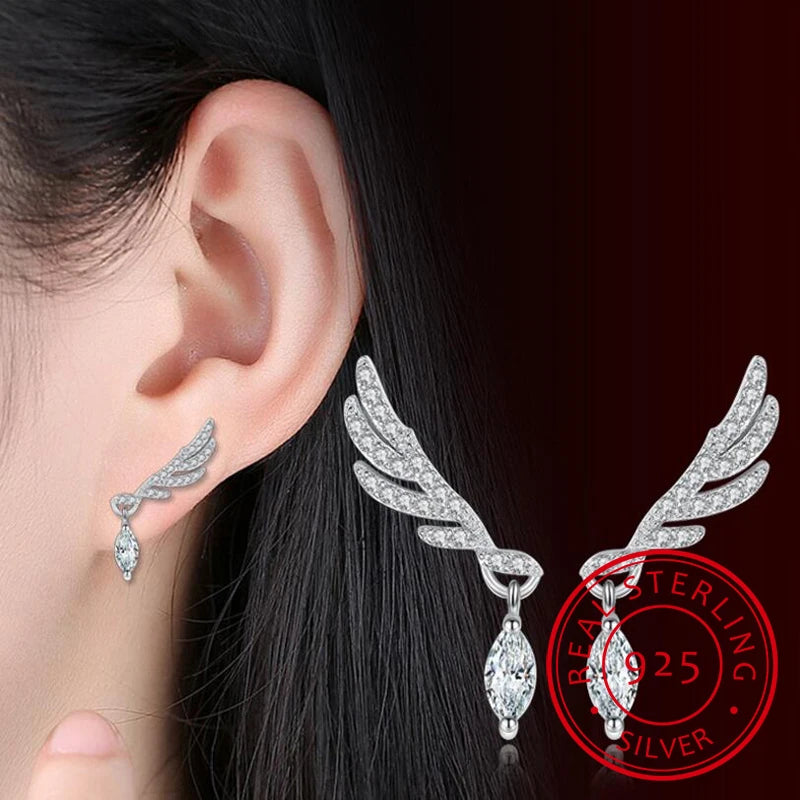 925 Silver Angel Wings Stud Earrings Zirconia Korea Jewelry Oorbellen