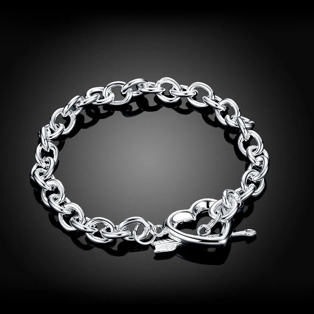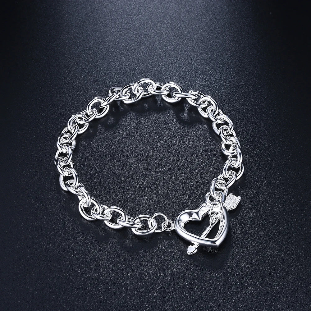 Elegant 925 sterling silver bracelet with arrow heart chain design, perfect for weddings and parties.