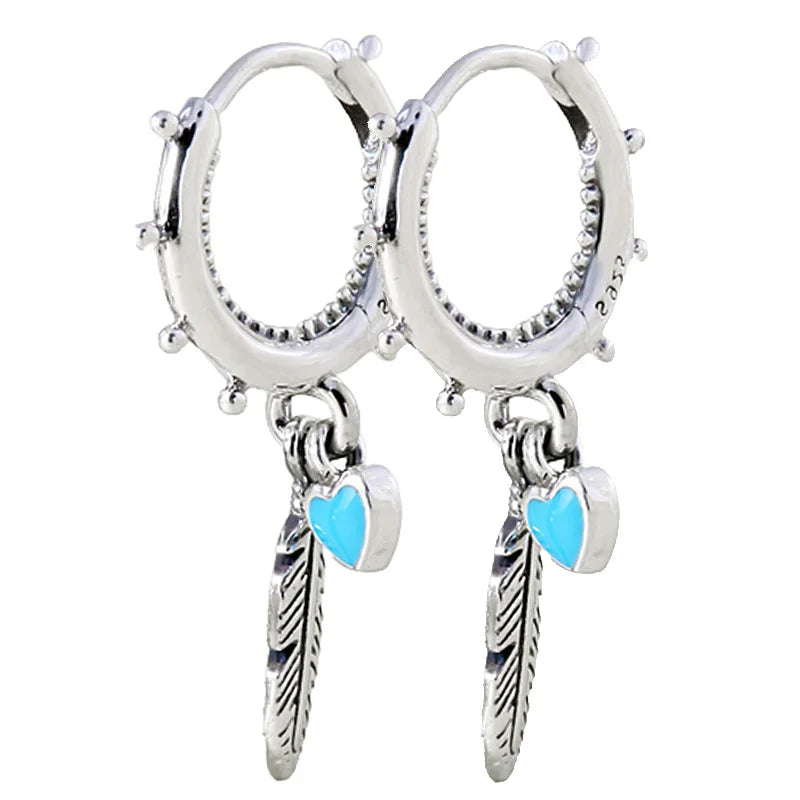 Add a touch of spirituality and style with this unique silver earring featuring heart and feather design. A perfect gift for women.