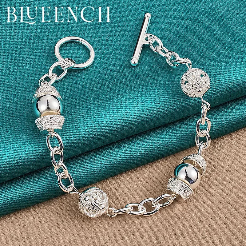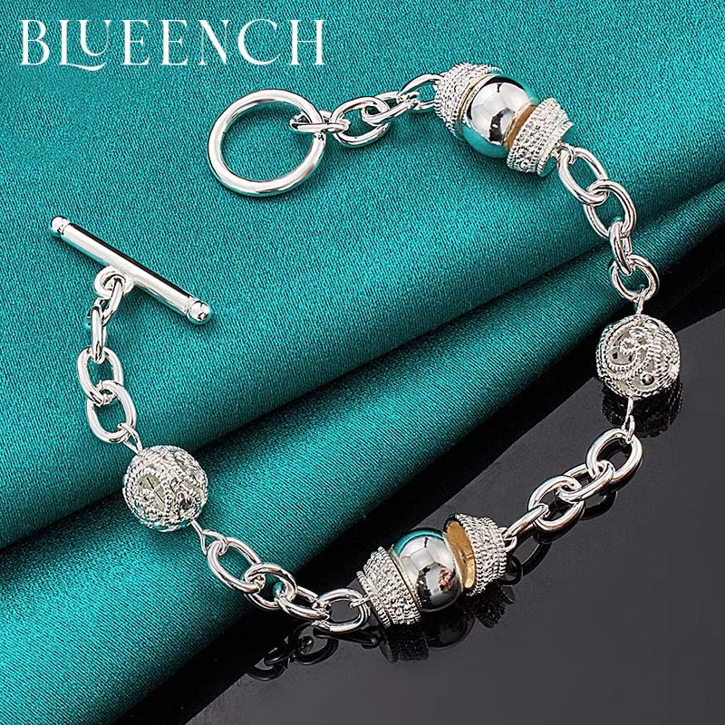 925 Silver Ball Hollowed Out Buckle Bracelet for Ladies
