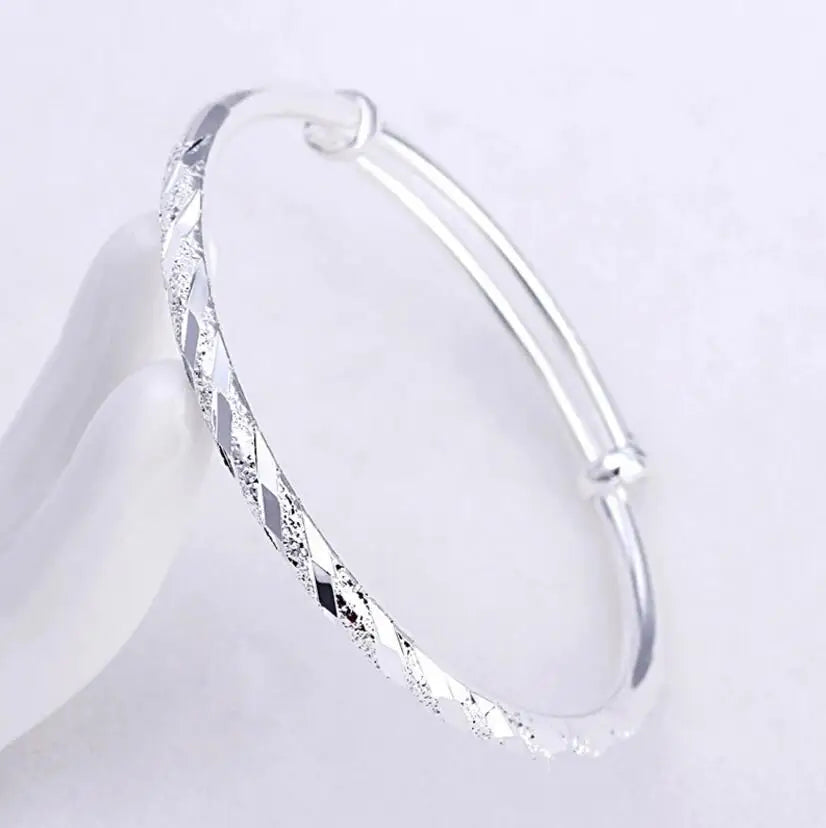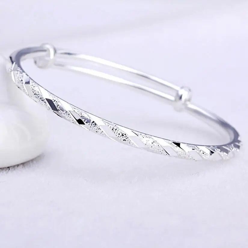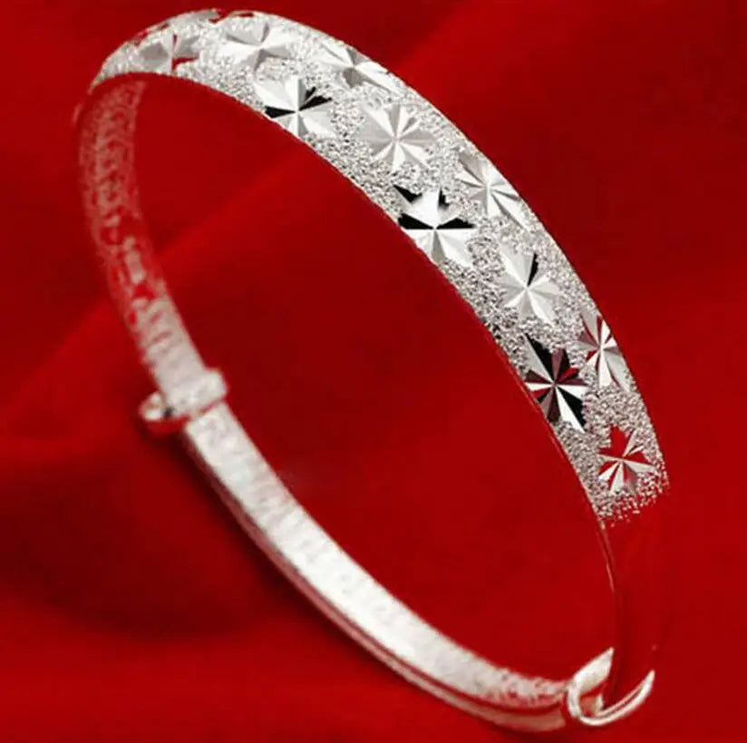 Elegant 925 sterling silver bangle bracelet with a retro design, perfect for women. This solid bracelet features fine stars and is a great gift for any occasion.