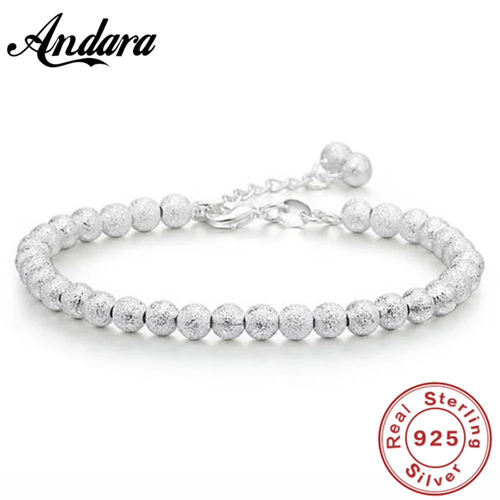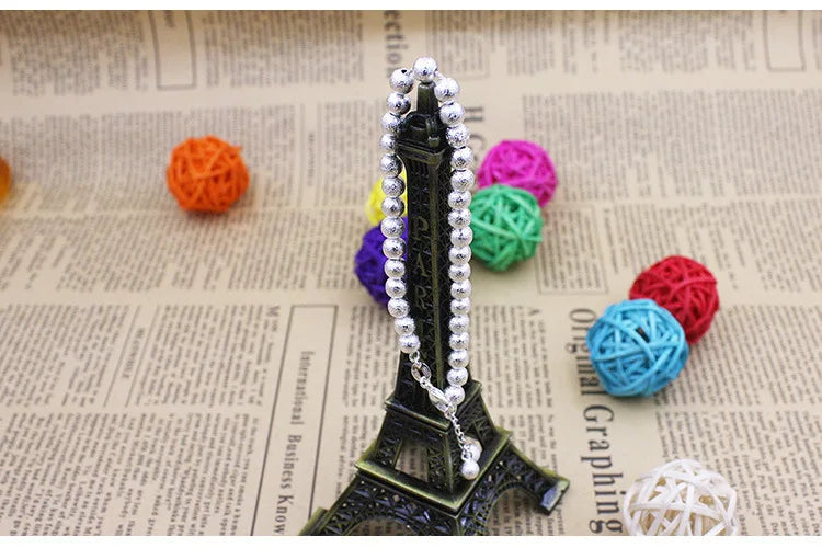 Elegant 5MM bead frosted bracelet made of 925 sterling silver, perfect for engagement, wedding, or everyday charm jewelry.