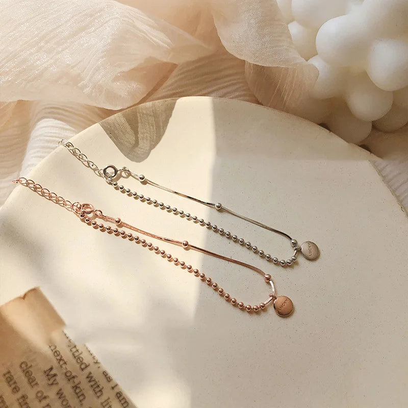 This beautiful 925 sterling silver bracelet features adjustable beads that bring luck and charm. Perfect for weddings, parties, or daily wear.