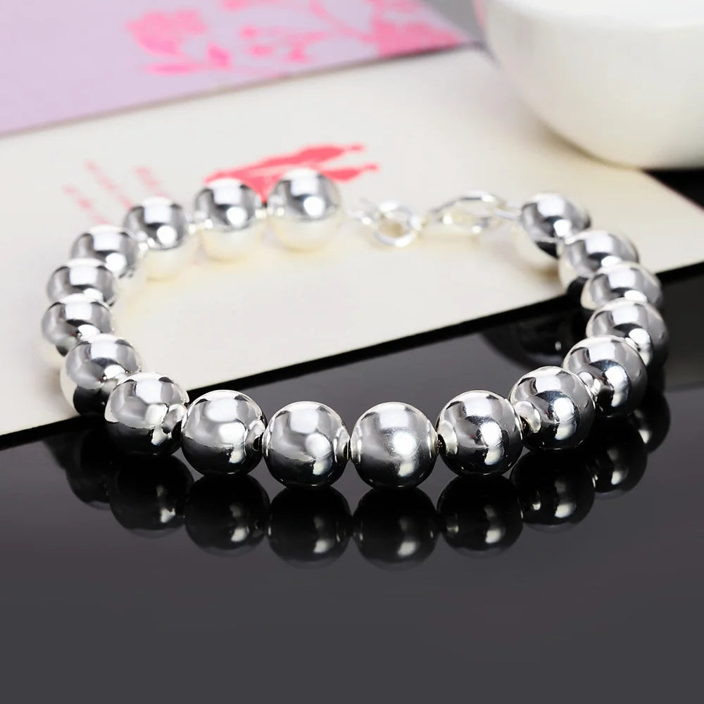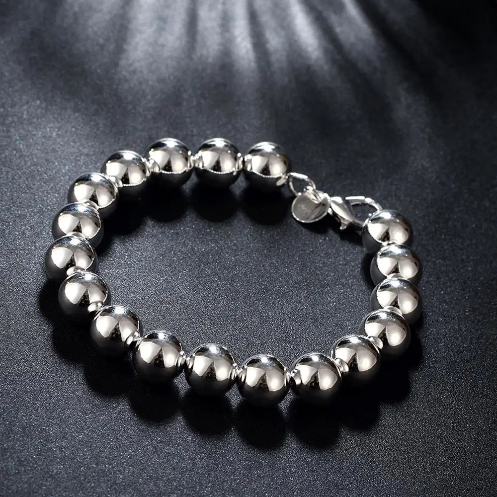 This 925 sterling silver bracelet features 10MM beads, perfect for parties, weddings, and everyday wear. A fine jewelry accessory that suits both men and women.