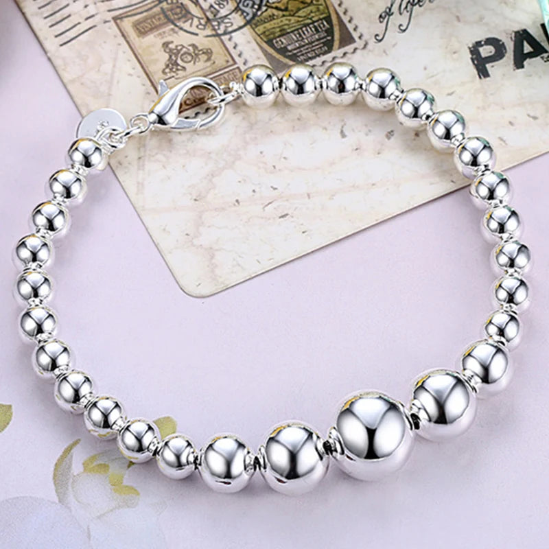 This elegant bracelet features 925 silver beads on a chain, perfect for both women and men. It adds a touch of sophistication to any outfit.