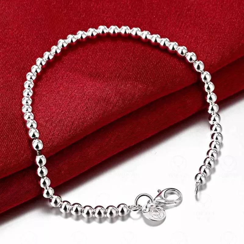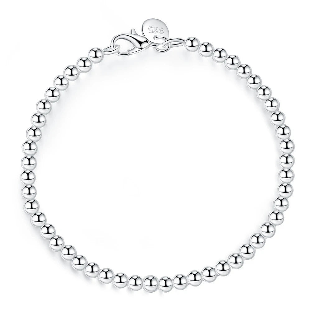 This stylish 925 sterling silver bracelet features 4mm round ball beads, making it a perfect accessory for women, girls, or as a gift for a loved one.