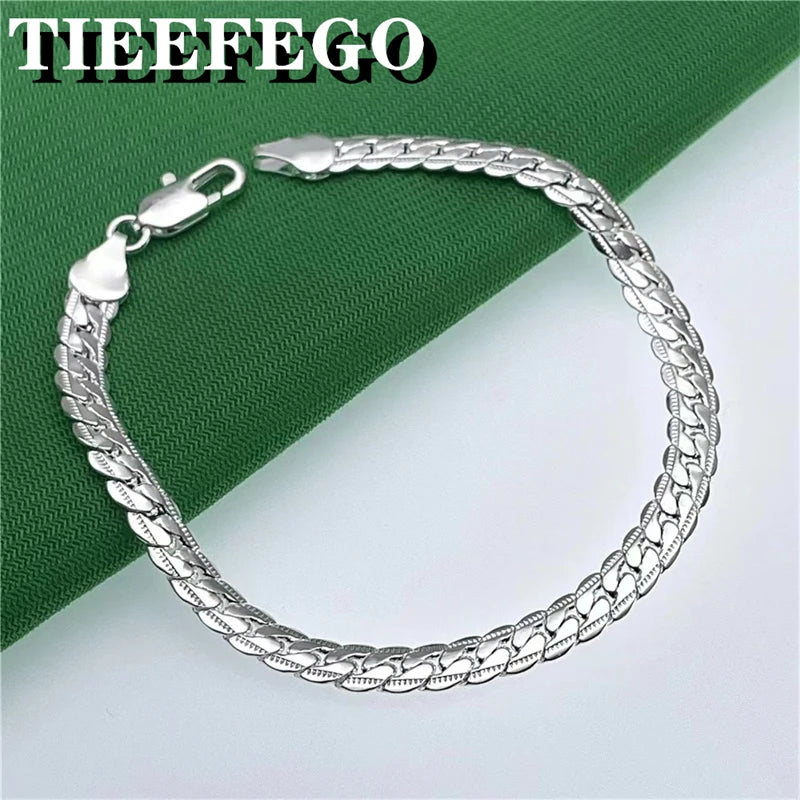 This 925 sterling silver bracelet features a 6mm flat side chain with a lobster clasp, making it perfect for both women and men. Ideal for weddings, engagements, or everyday wear.