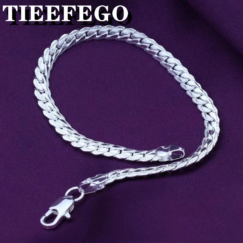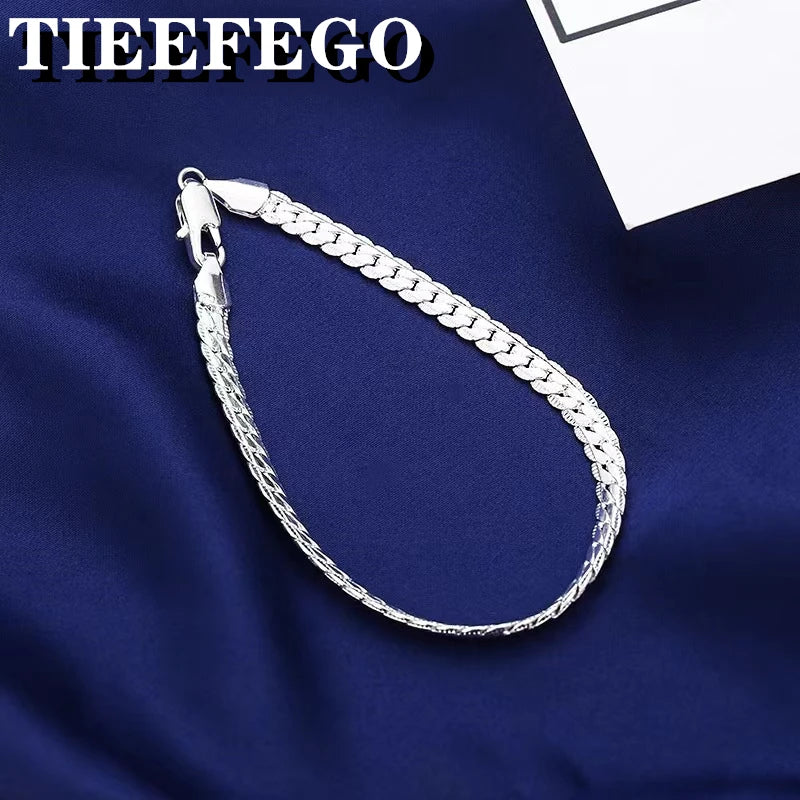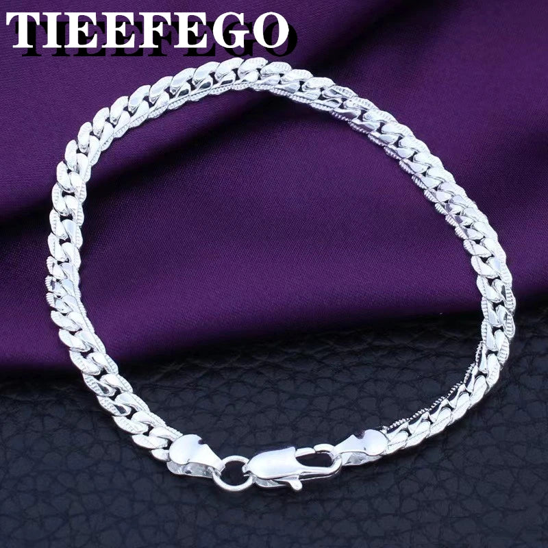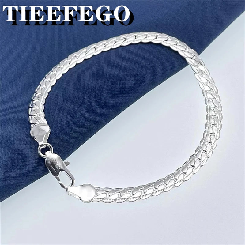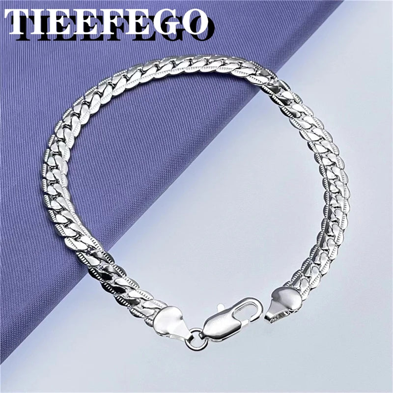 925 Silver Bracelet 6mm Chain Lobster Clasp Wedding Jewelry