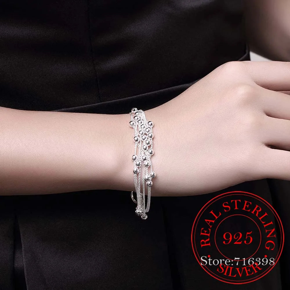 This 925 silver bracelet is a fine piece of jewelry for women, featuring six tassels and beads. It is a special gift for the modern and stylish woman.