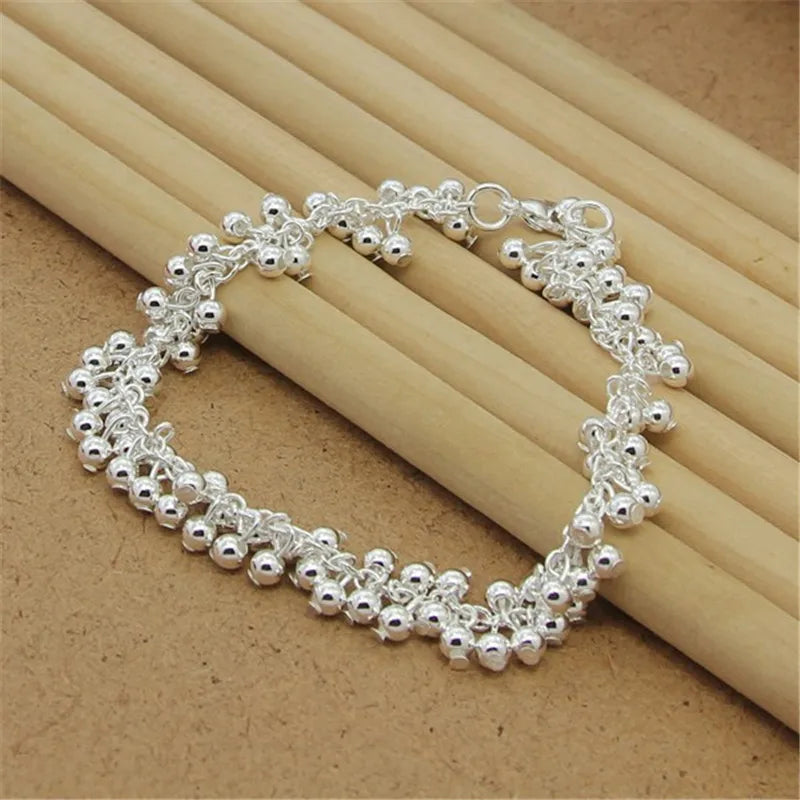 This elegant 925 sterling silver bracelet features charming grape pearl beads, perfect for parties and as a gift. Enhance your charm with this unique jewelry piece.