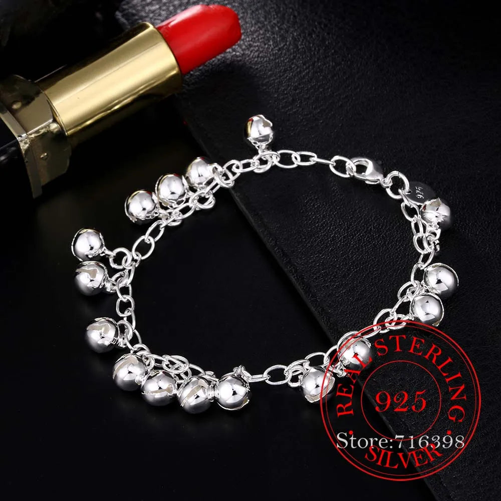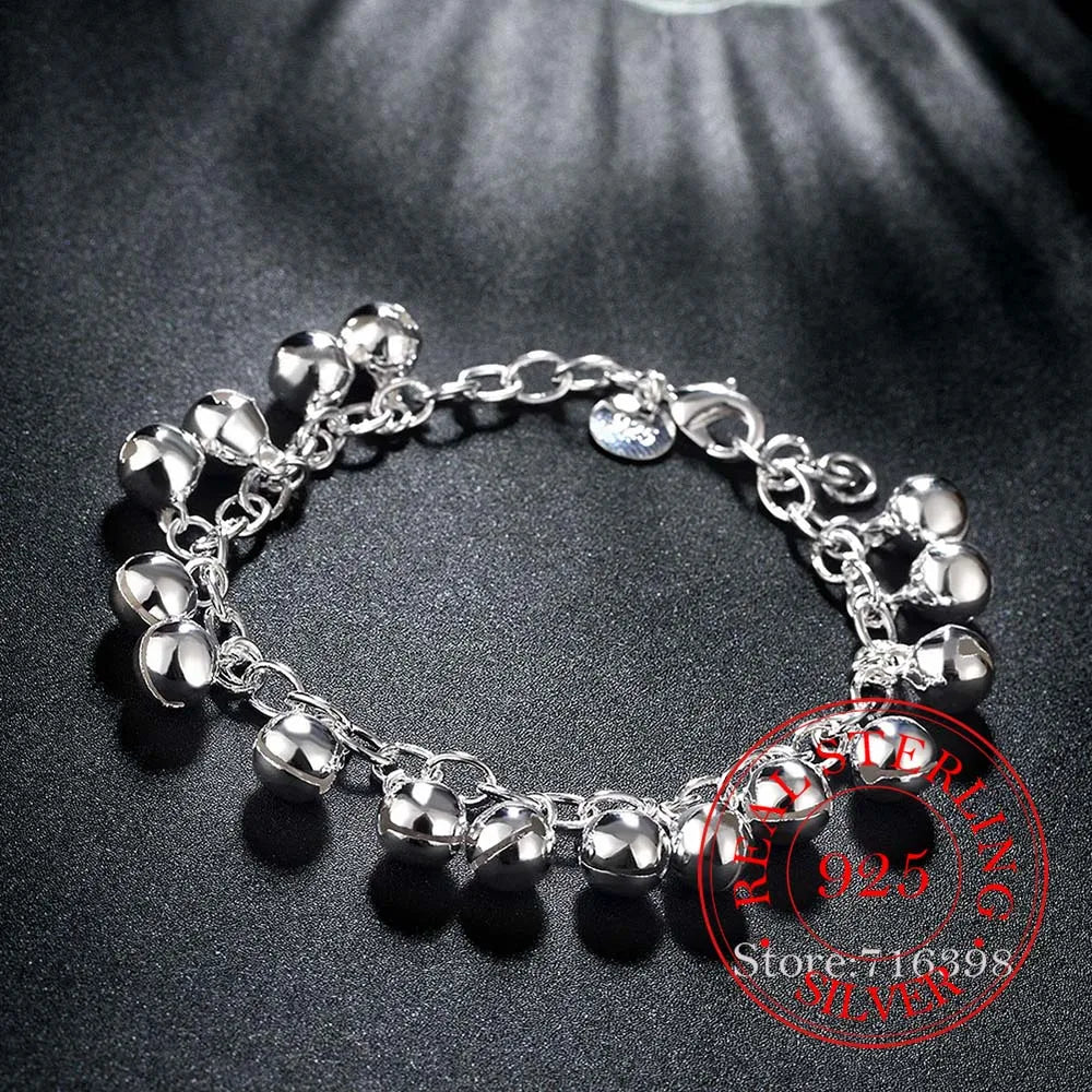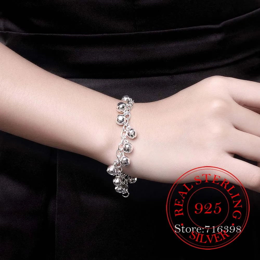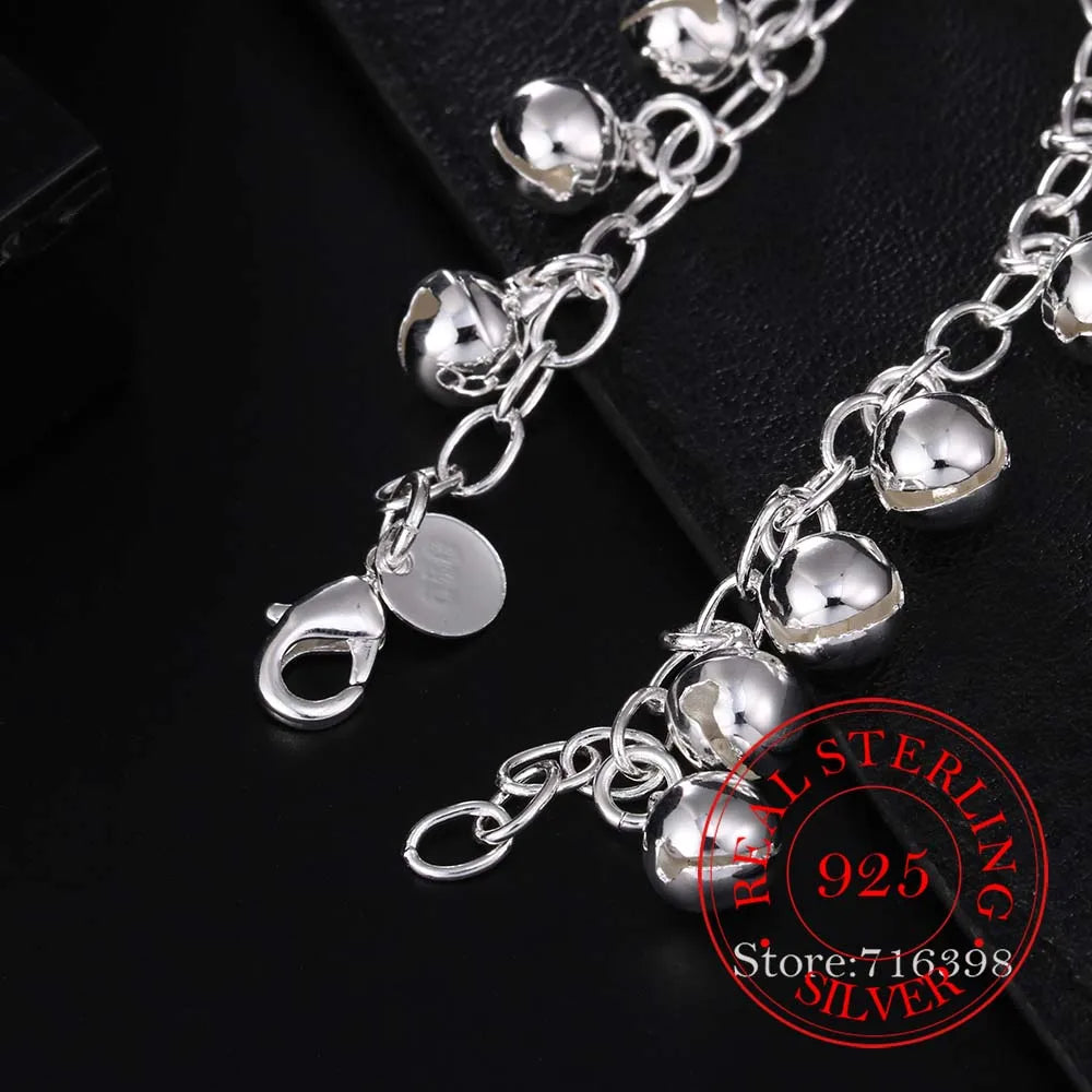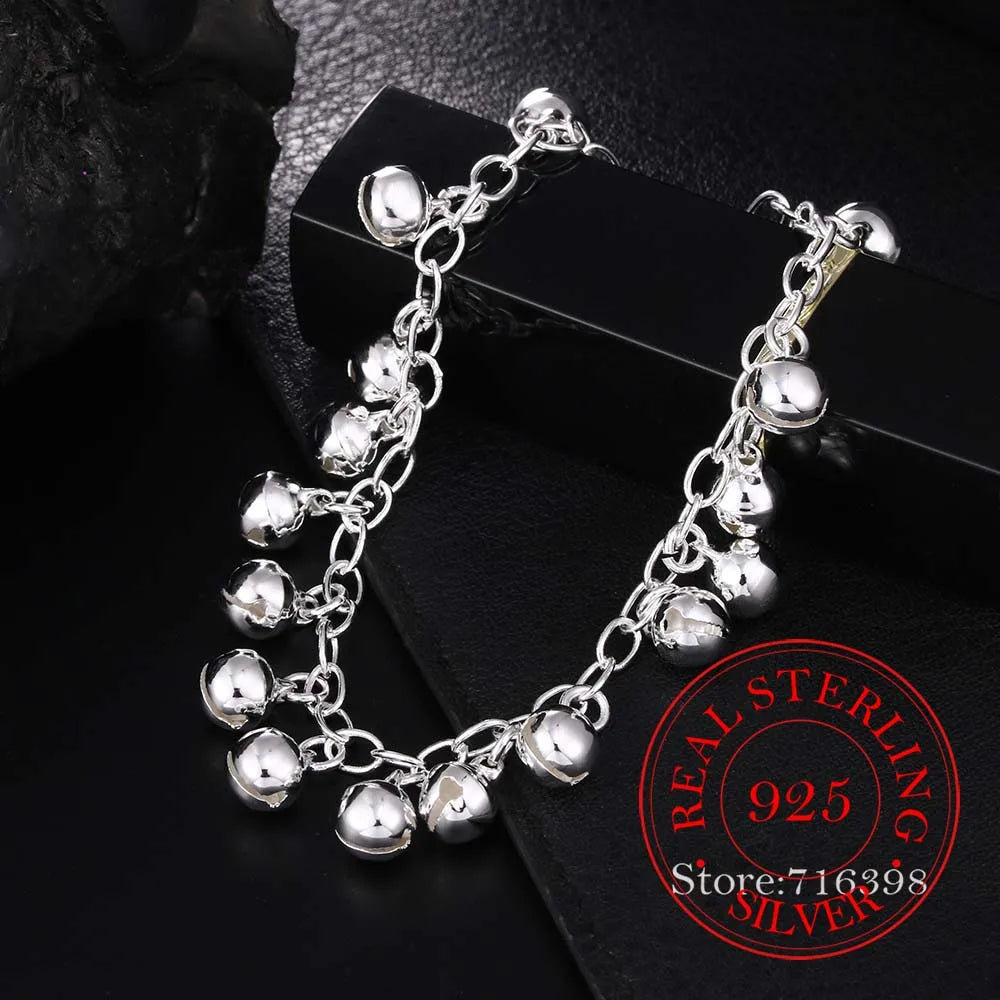Elegant and stylish 925 sterling silver bracelet featuring jingle bells charm. Perfect for men and women, ideal for parties and as a gift.
