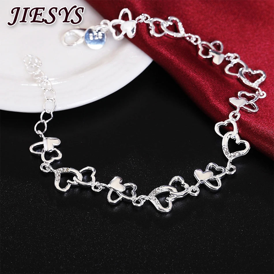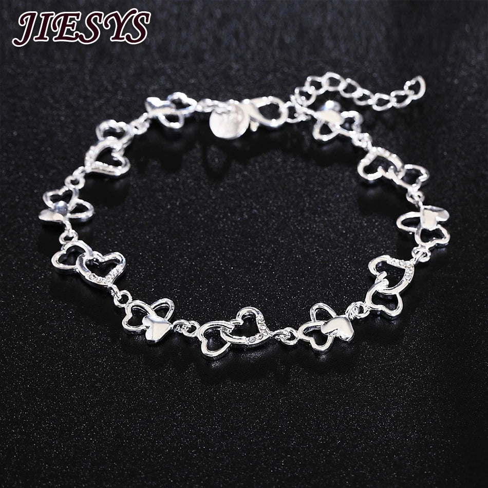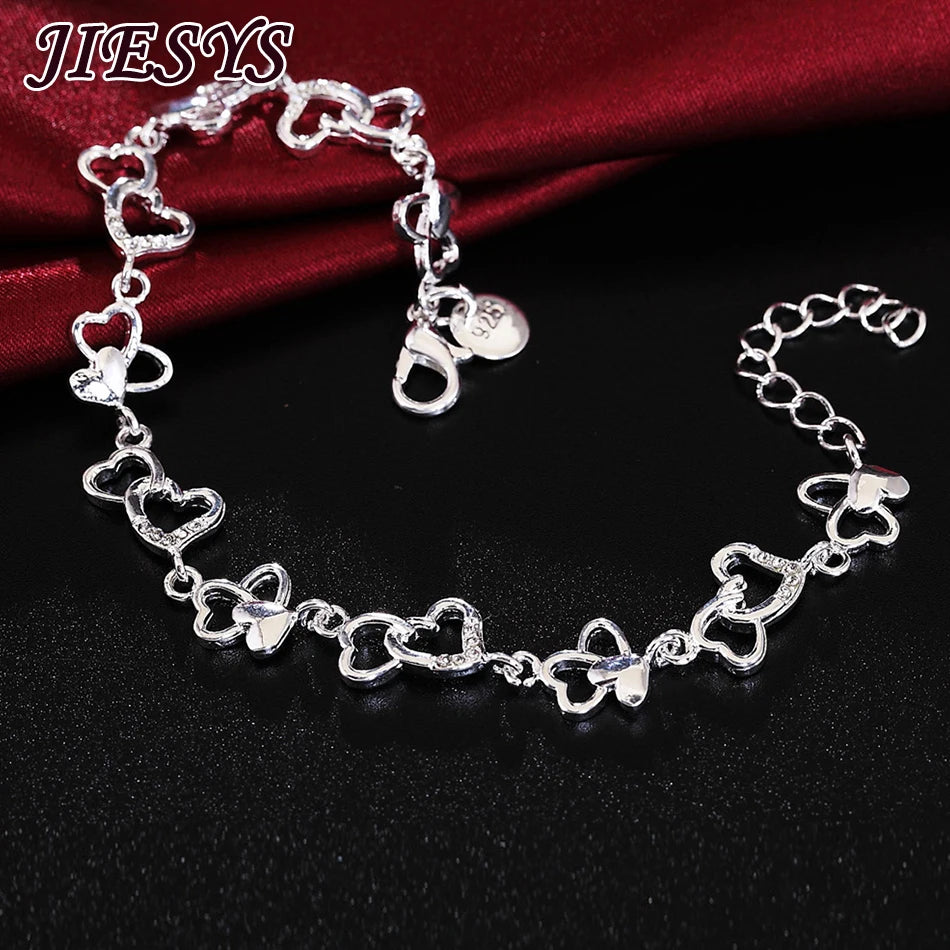 This charming 925 sterling silver bracelet is perfect for women. It features a heart chain design that makes it ideal for weddings, parties, and Christmas celebrations.