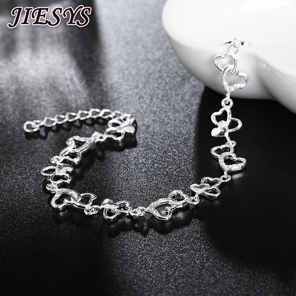 925 Silver Bracelet Women Heart Chain Wedding Party Christmas Jewelry