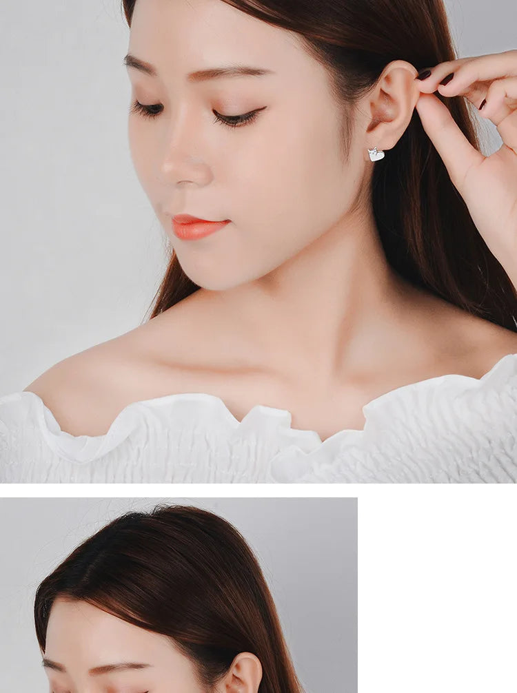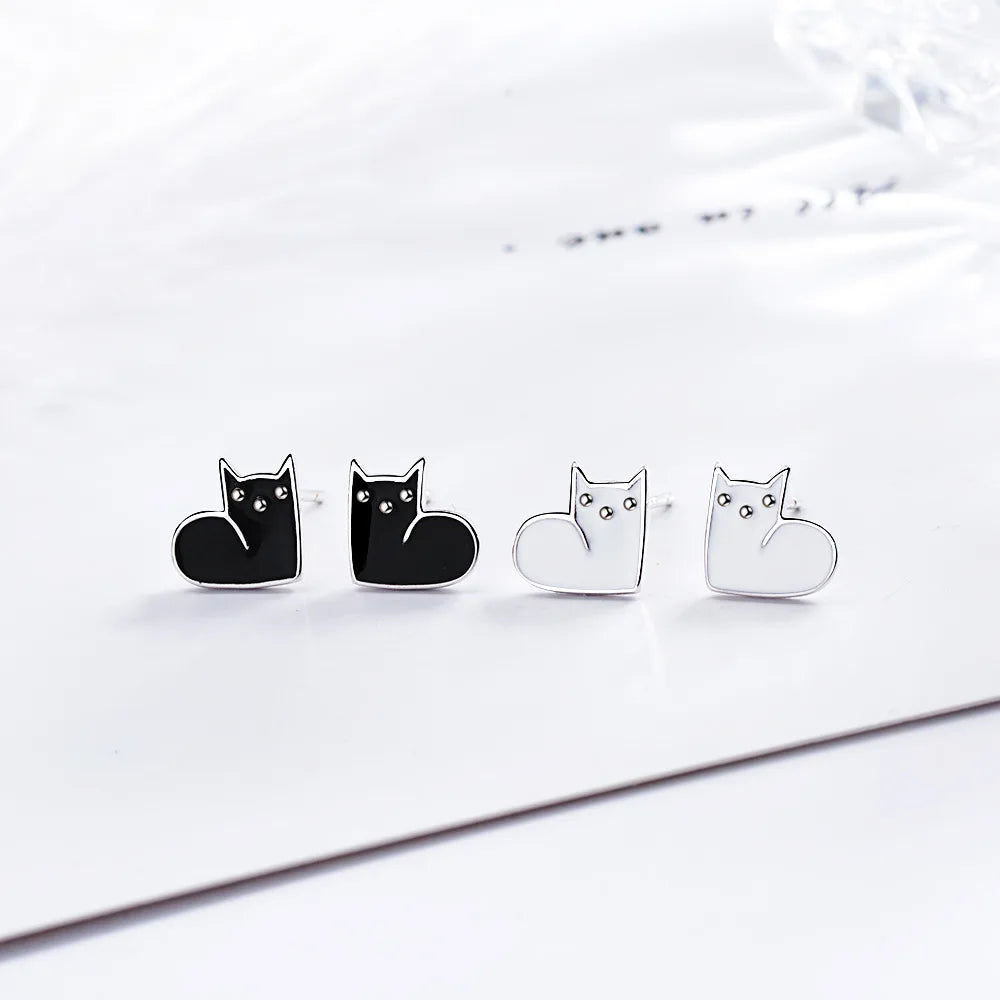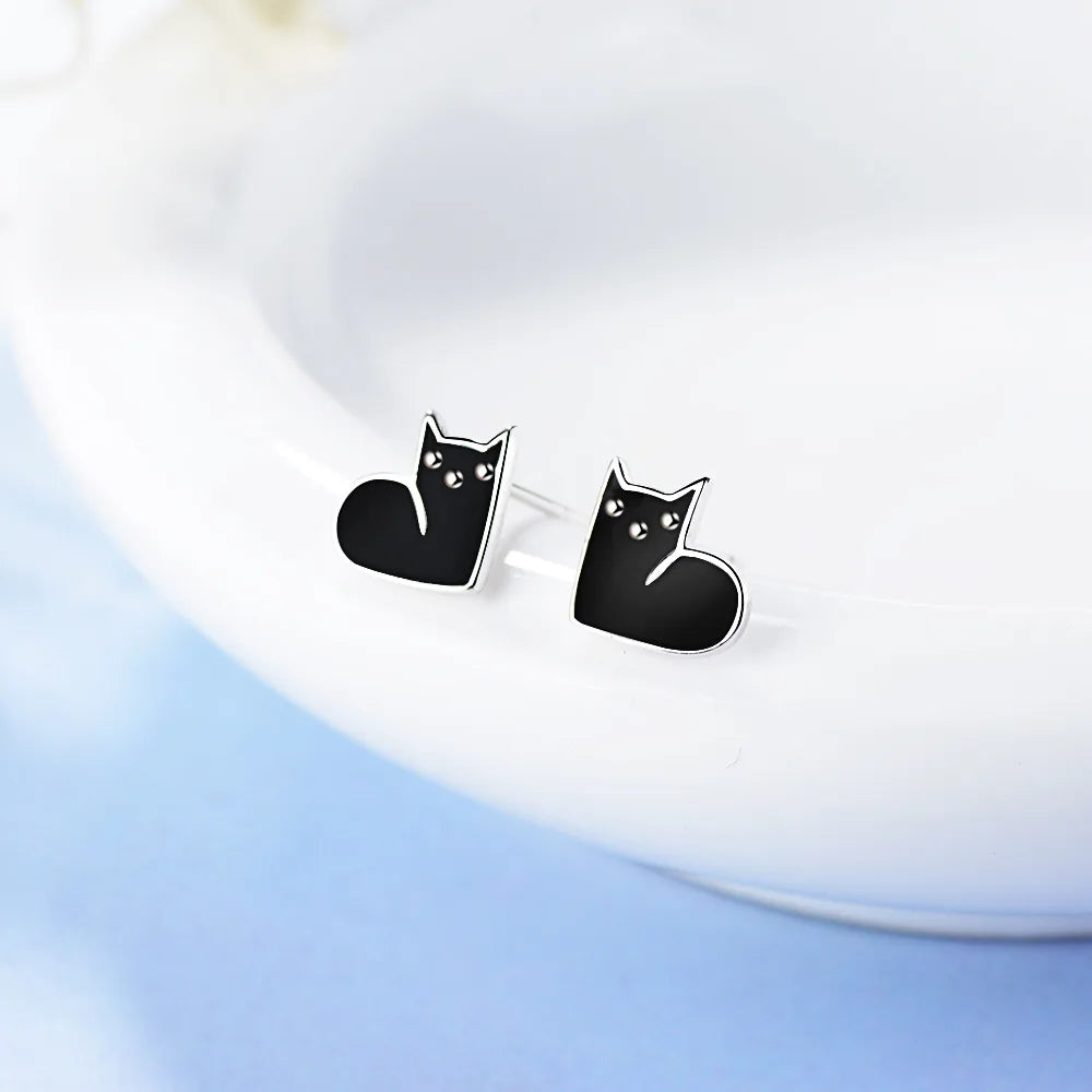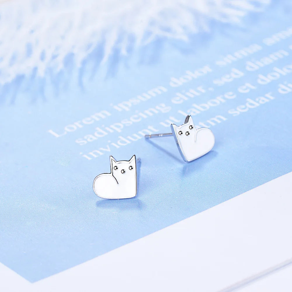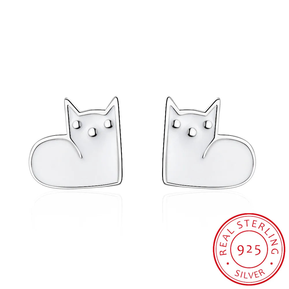 Adorable 925 sterling silver cat earrings with enamel detailing. Perfect for women and girls who love feline-inspired jewelry.