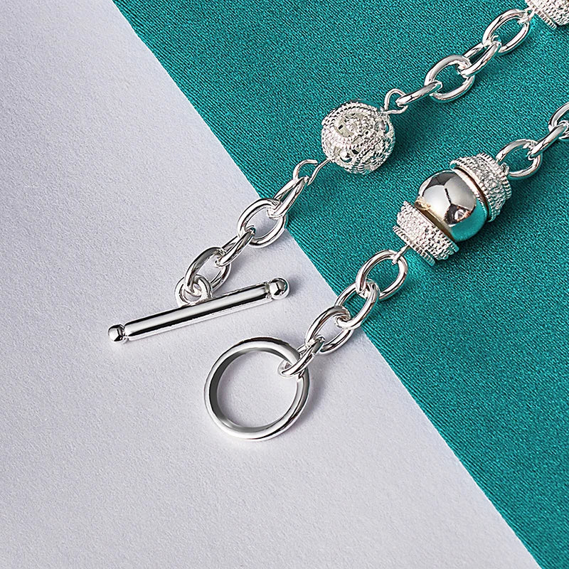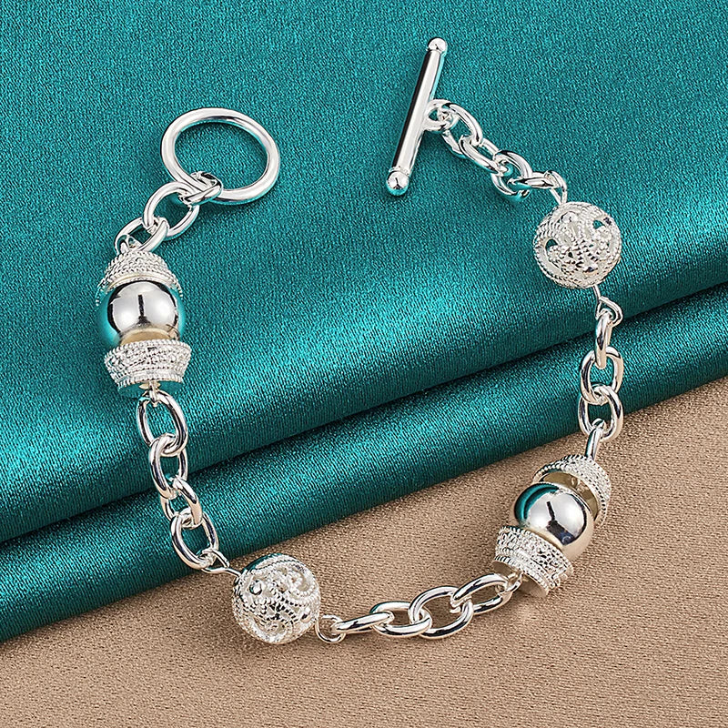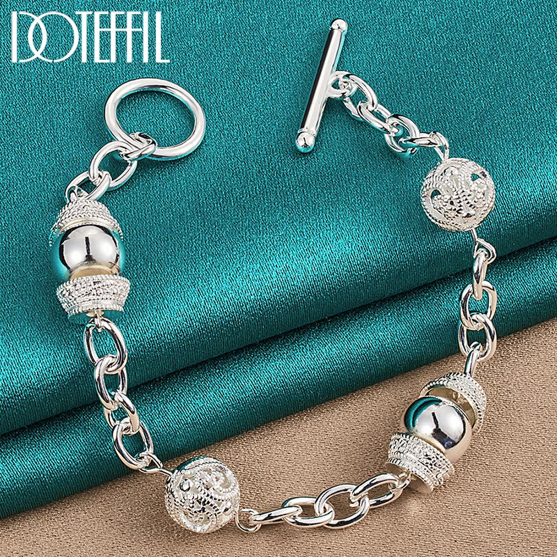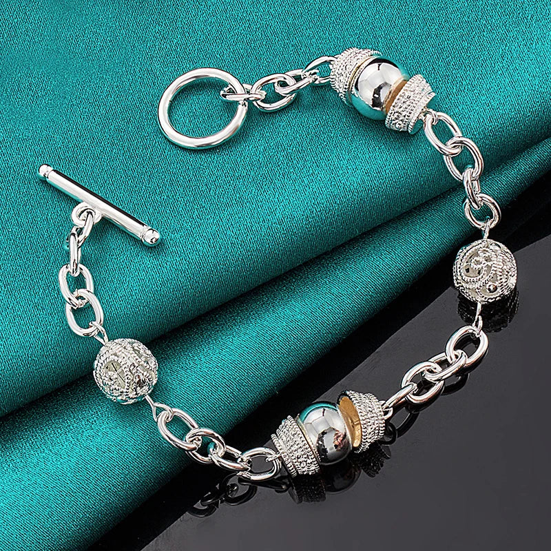 This stunning 925 sterling silver charm bracelet features a beautiful hollow ball design. Perfect for weddings, engagements, and parties.