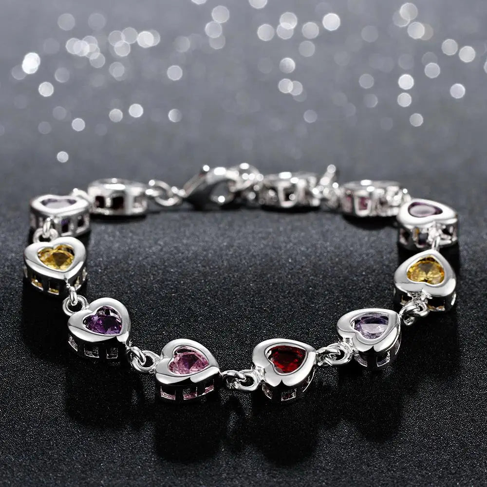 Elegant 925 sterling silver charm bracelet with crystal stone drop, perfect for women at weddings or special occasions.