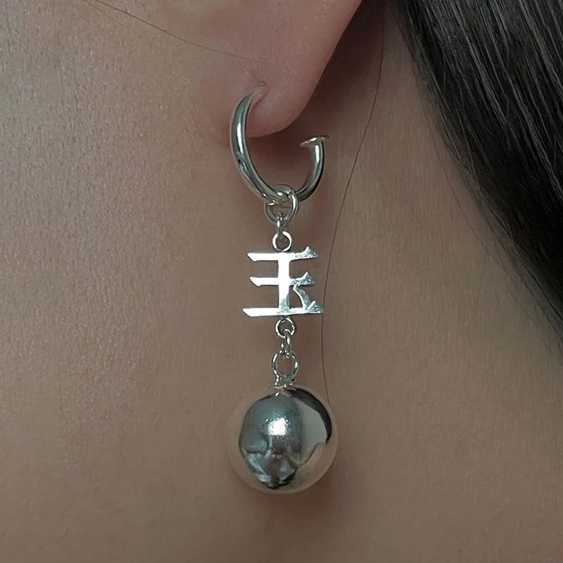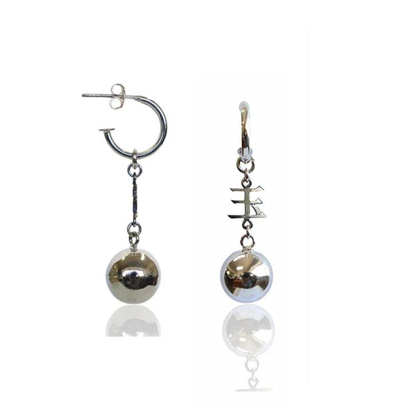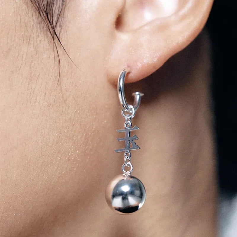 This pair of elegant hoop earrings features Chinese character balls and long tassel chains. Crafted from 925 sterling silver, these earrings are perfect for adding a touch of sophistication to any outfit.